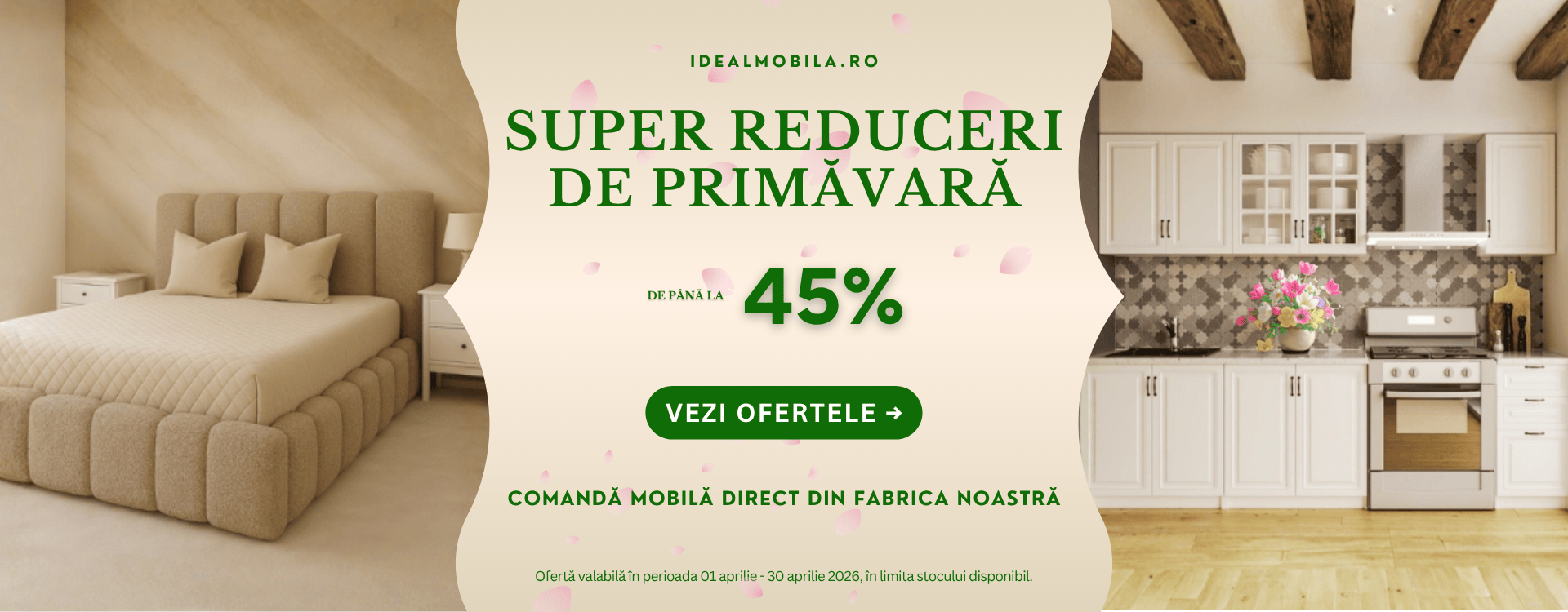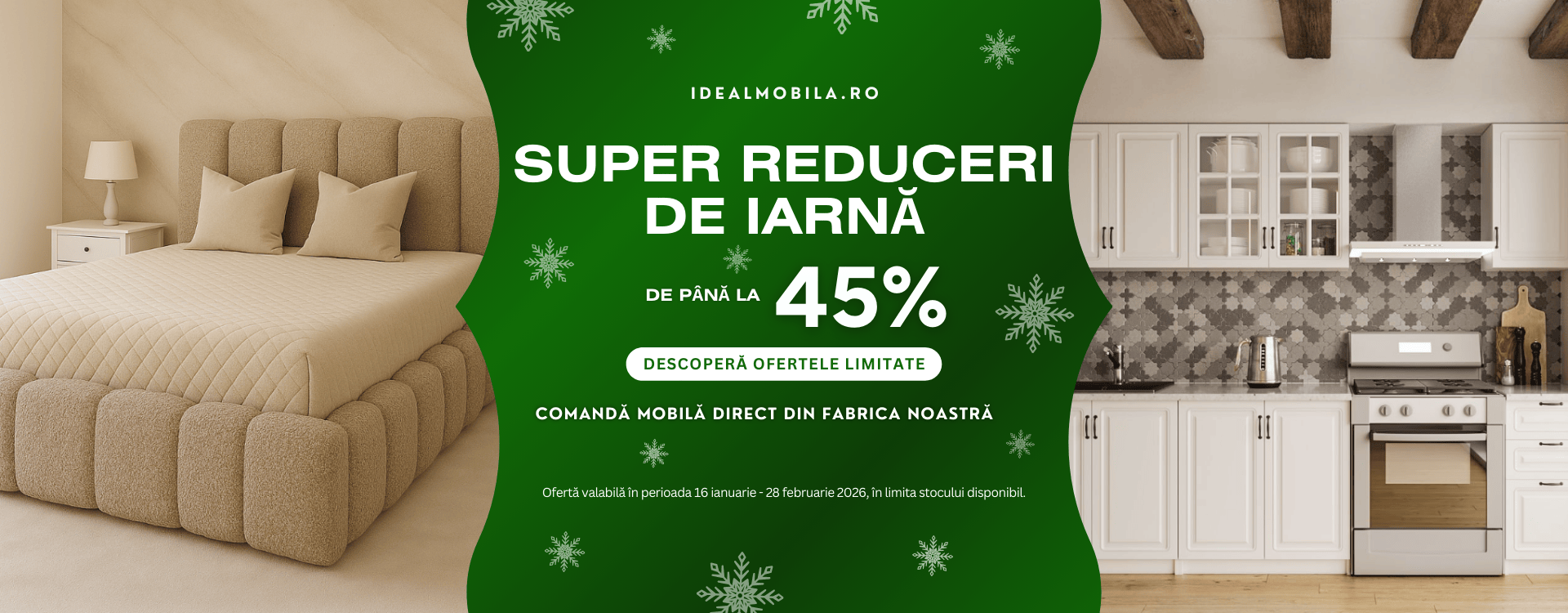 Creăm piese de mobilier care îmbină estetica modernă cu funcționalitatea, pentru a-ți oferi confortul de care ai nevoie. Toate produsele sunt realizate direct în fabrica Ideal Mobila, garantând astfel standarde ridicate de calitate și prețuri foarte avantajoase. Dormitorul tău, locul în care te încarci cu energie, merită să fie exact așa cum ți-l imaginezi.