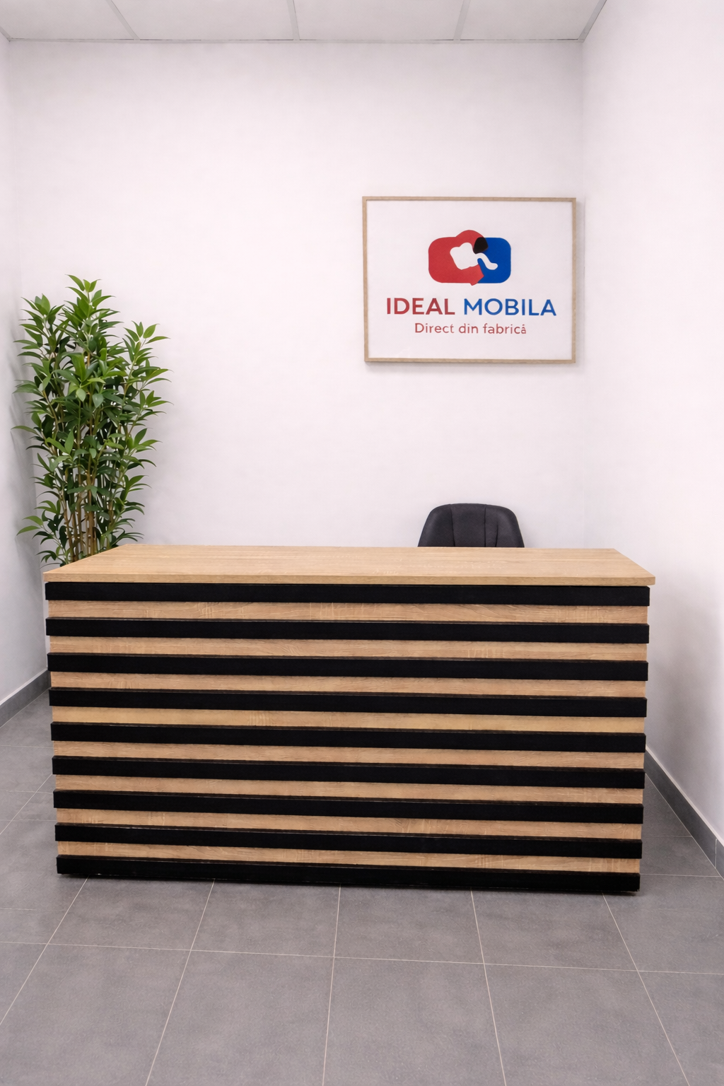 Birou elegant, cu design contemporan, realizat din PAL de calitate superioară, ideal pentru recepție, birou administrativ sau spațiu comercial.