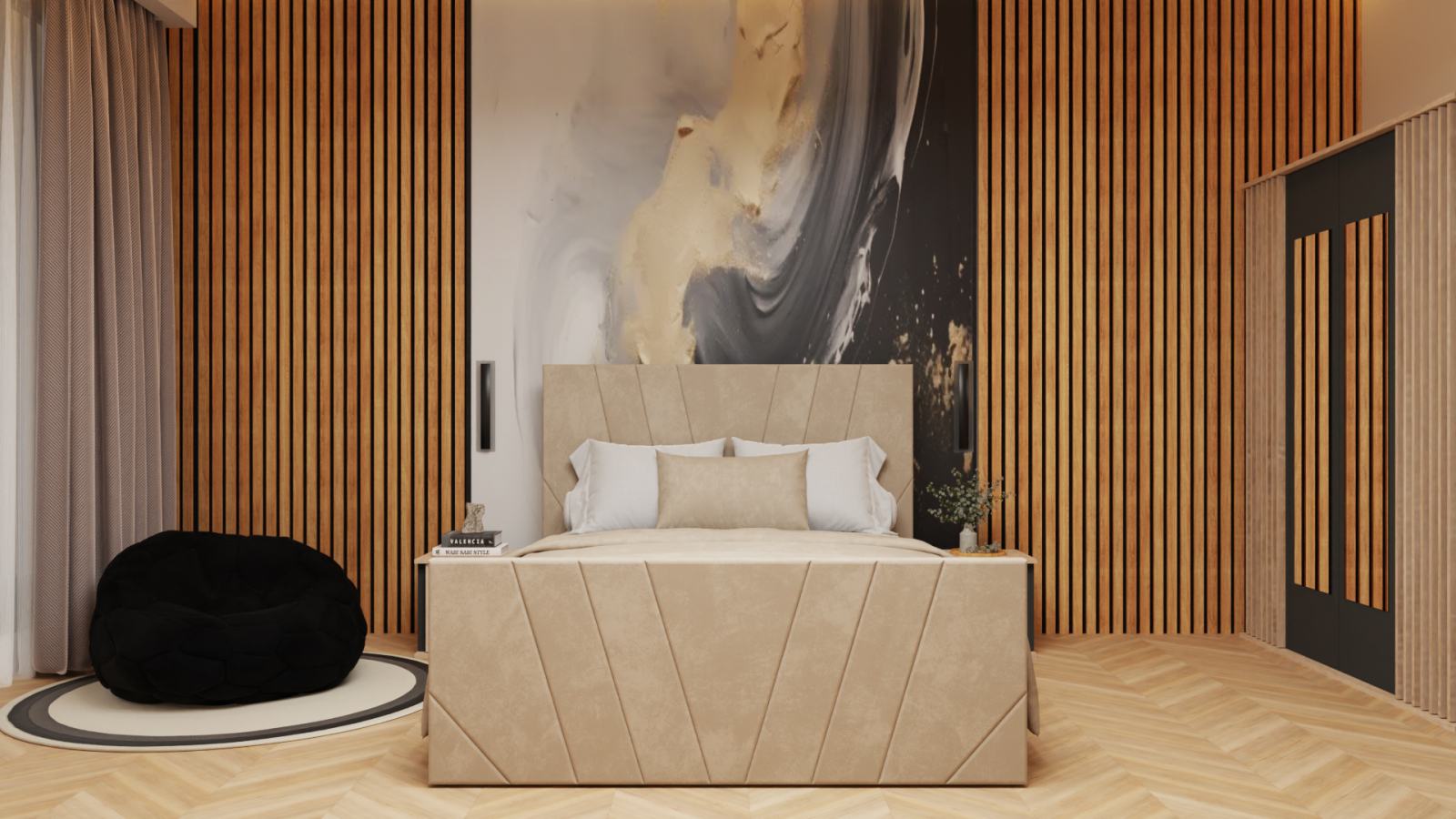 Dormitor: Dallas Cu Pat Tapitat Bej