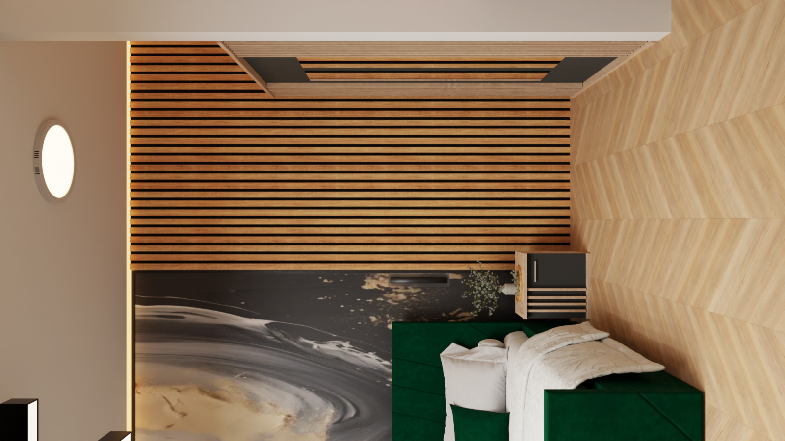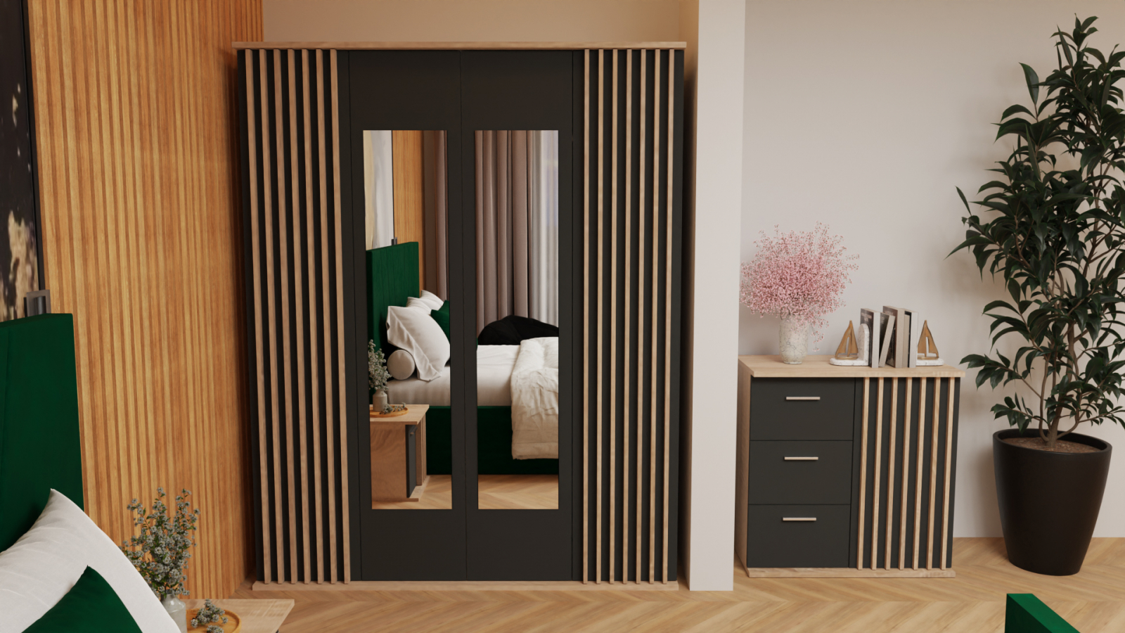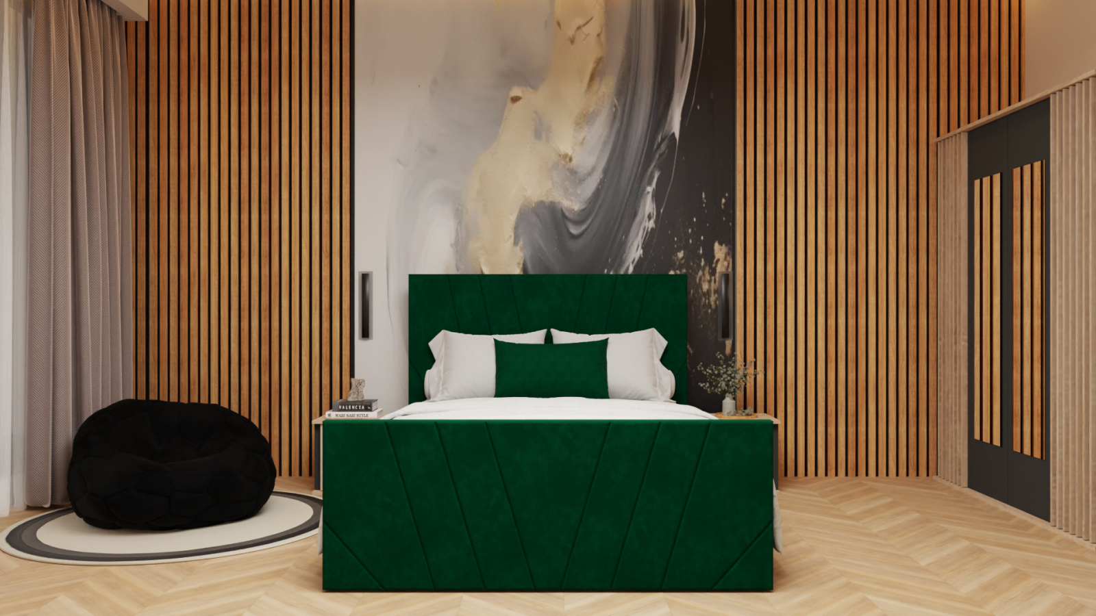 Dormitor: Dallas Cu Pat Tapitat Verde