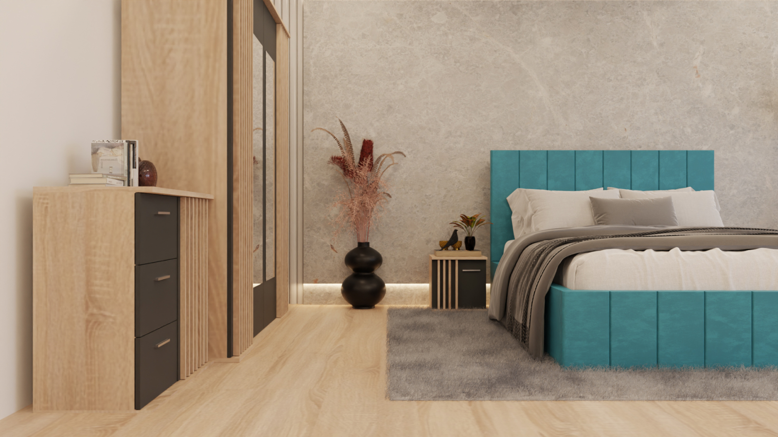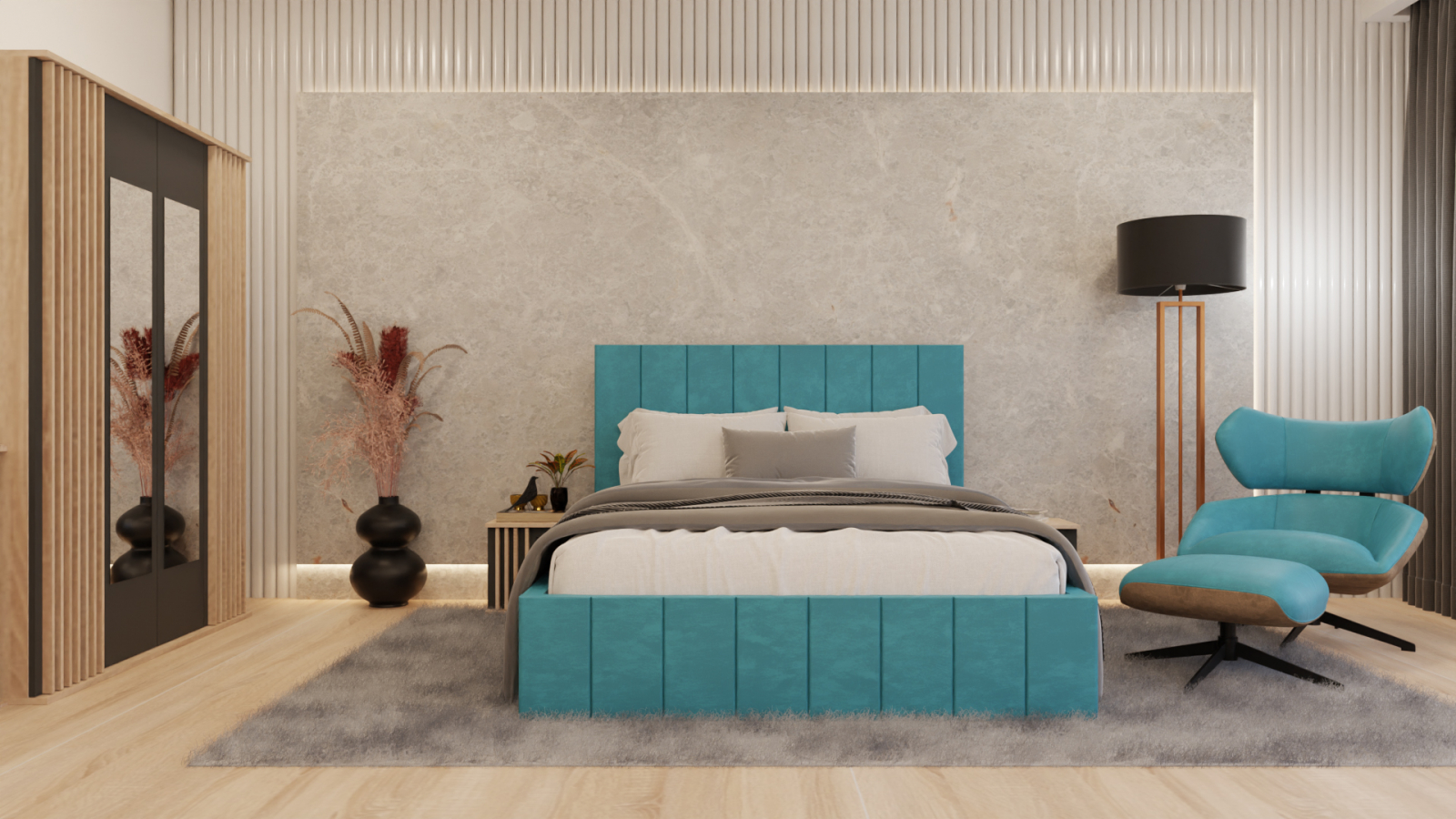 Dormitor: Dallas Cu Pat Tapitat Turcoaz