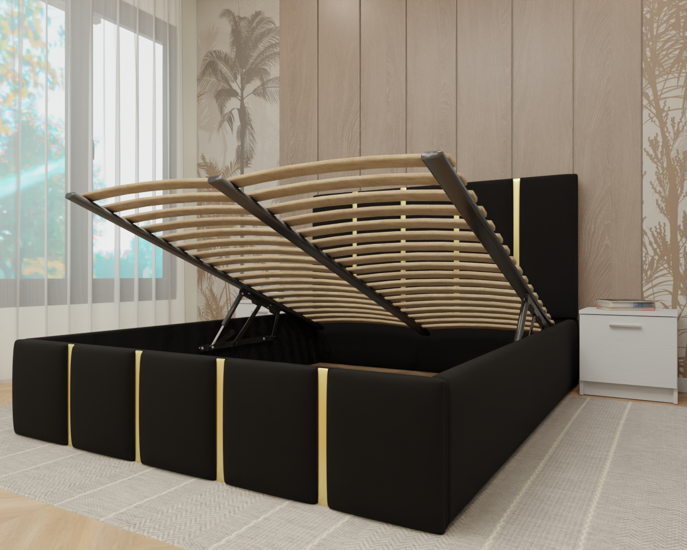 Dormitor MILANO Tapitat, 200X200 Alb cu oglinda, Somiera Rabatabila