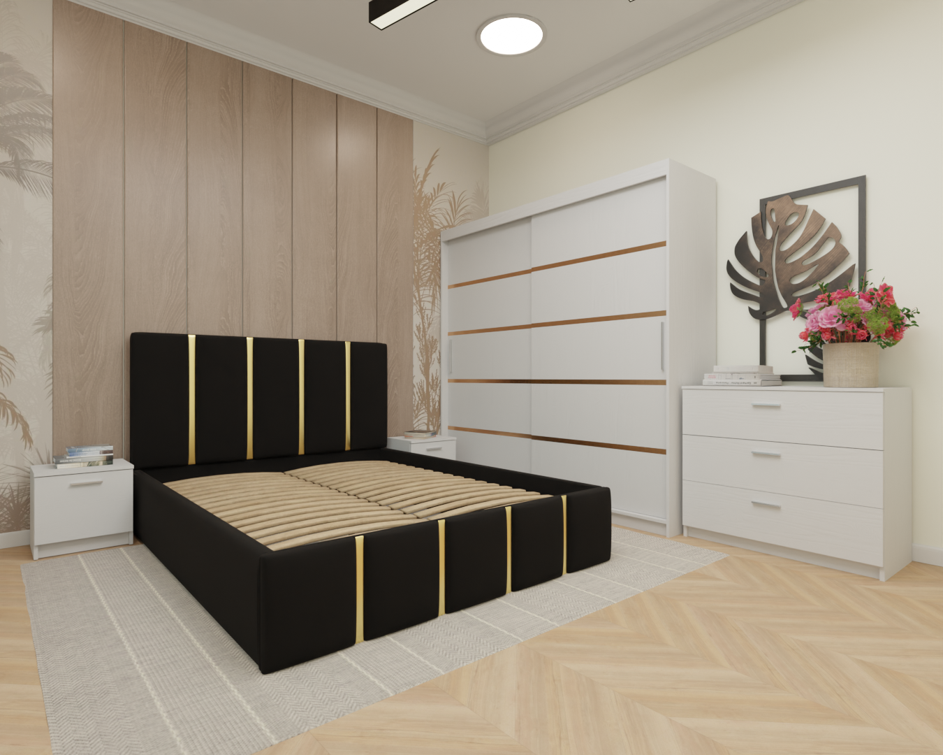 Alege Setul de dormitor MILANO fără saltea, un ansamblu de mobilier modern, conceput pentru confort, organizare și un design echilibrat. Ideal pentru dormitoare matrimoniale, acest set oferă spații generoase de depozitare și un aspect elegant, potrivit oricărui stil de amenajare.