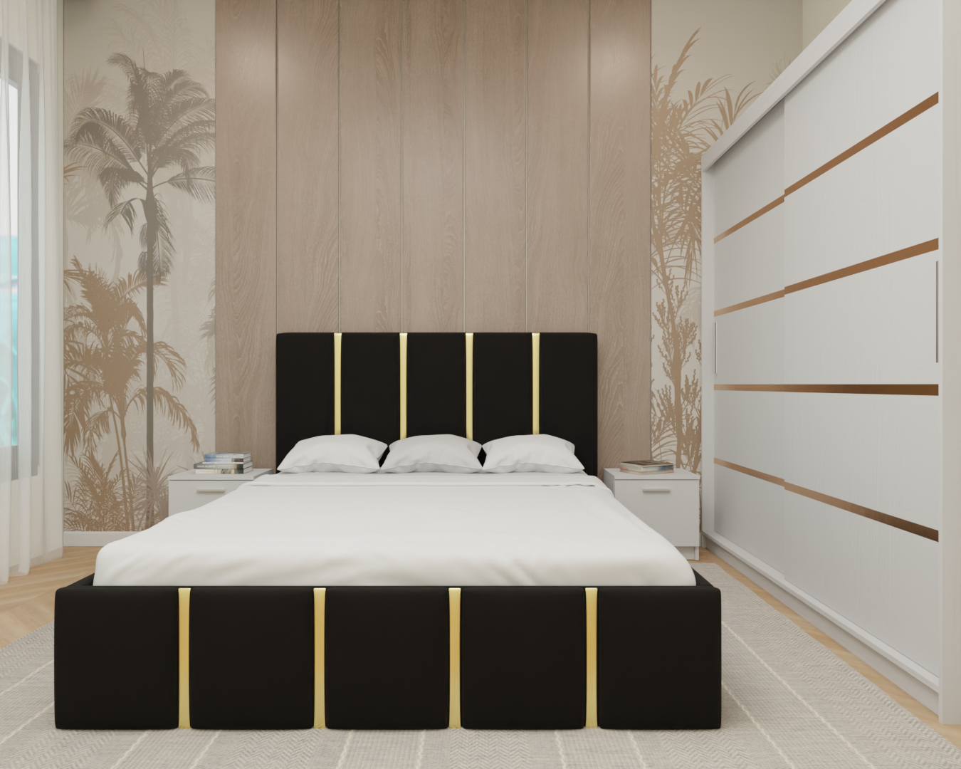 Dormitor MILANO Tapitat, 200X200 Alb fara oglinda, Somiera Rabatabila