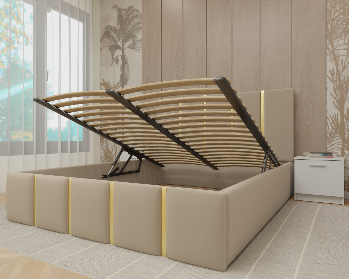 Pat dormitor disponibil în dimensiuni de 140x200 cm, 160x200 cm sau 180x200 cm