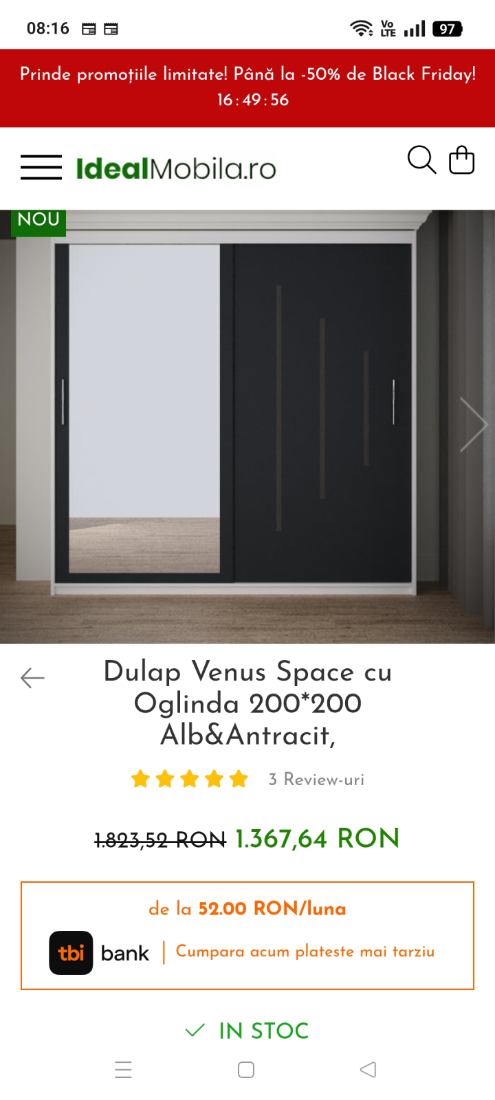Chiar dacă a ajuns mai târziu e un dresing care merită toți banii.,raport calitate preț excelent.Dacă aveți nevoie cumpărați cu încredere, chiar e ce trebuie. Bravo idealmobila!