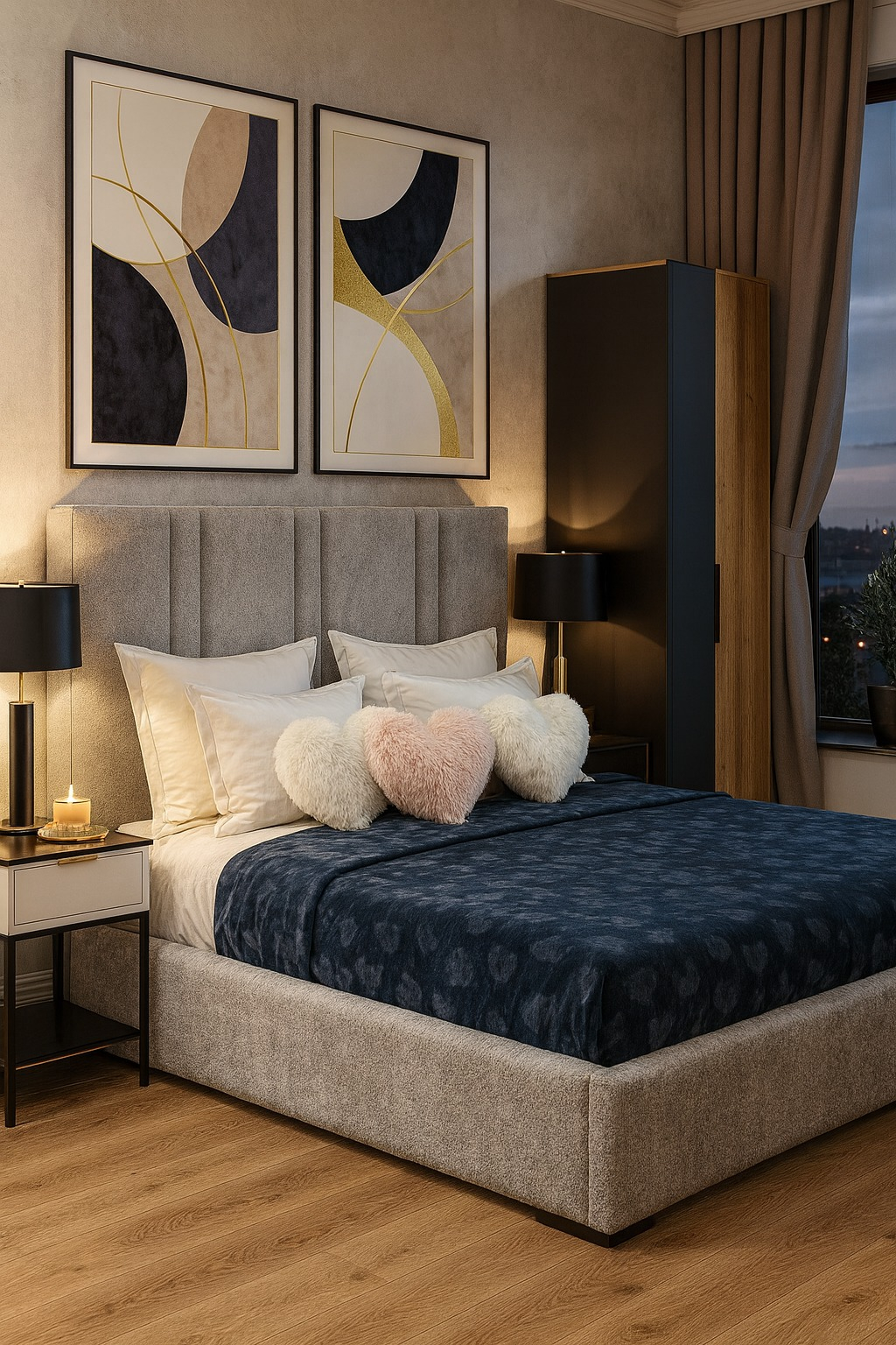Tăblia înaltă și capitonată oferă un plus de rafinament și confort, ideală pentru momentele de relaxare.