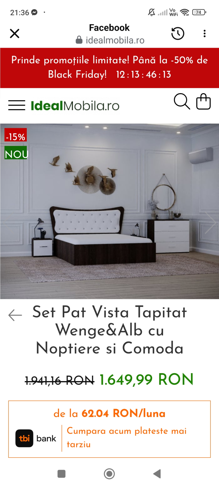 Patul se poate achizitiona si la dimensiunea de 180 x 200 contra cost.