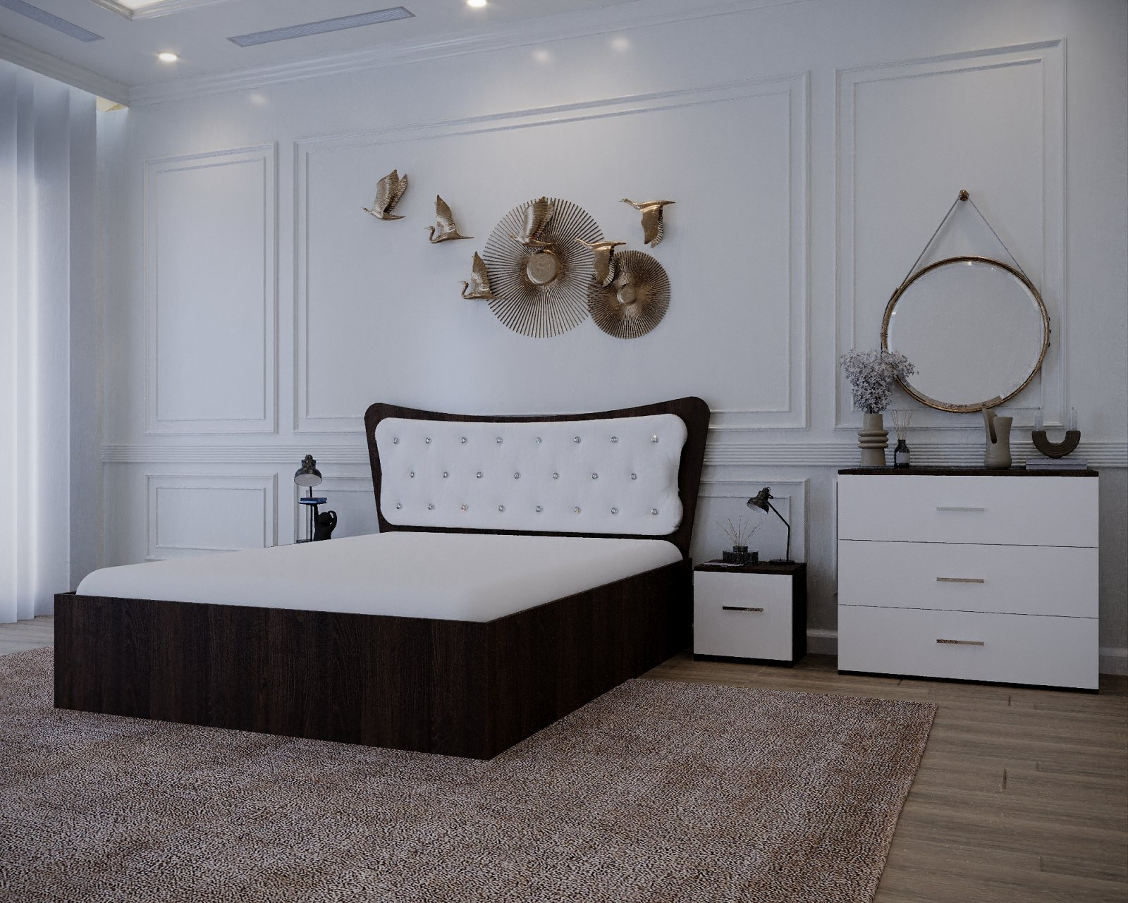 Set Pat Vista Tapitat Wenge&Alb cu Noptiere si Comoda