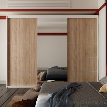 Dressing modern, ideal pentru organizarea eficientă a hainelor și accesoriilor, potrivit atât pentru dormitor, cât și pentru hol. Designul cu uși culisante economisește spațiu și oferă un aspect elegant și practic încăperii.