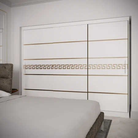 Acest dressing este o soluție practică și elegantă pentru organizarea hainelor și accesoriilor, fiind potrivit atât pentru dormitor, cât și pentru hol. Sistemul de uși culisante ajută la economisirea spațiului și oferă un acces facil la interiorul dressingului.