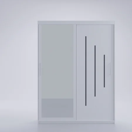 Acest dressing este o soluție practică și elegantă pentru organizarea hainelor și accesoriilor, fiind potrivit atât pentru dormitor, cât și pentru hol. Sistemul de uși culisante ajută la economisirea spațiului și oferă un acces facil la interiorul dressingului.