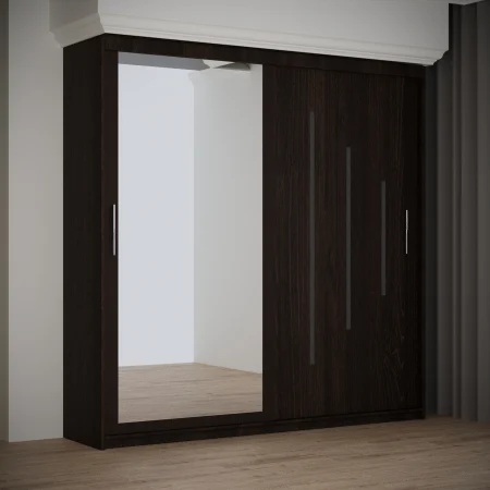 Acest dressing este o soluție practică și elegantă pentru organizarea hainelor și accesoriilor, fiind potrivit atât pentru dormitor, cât și pentru hol. Sistemul de uși culisante ajută la economisirea spațiului și oferă un acces facil la interiorul dressingului.