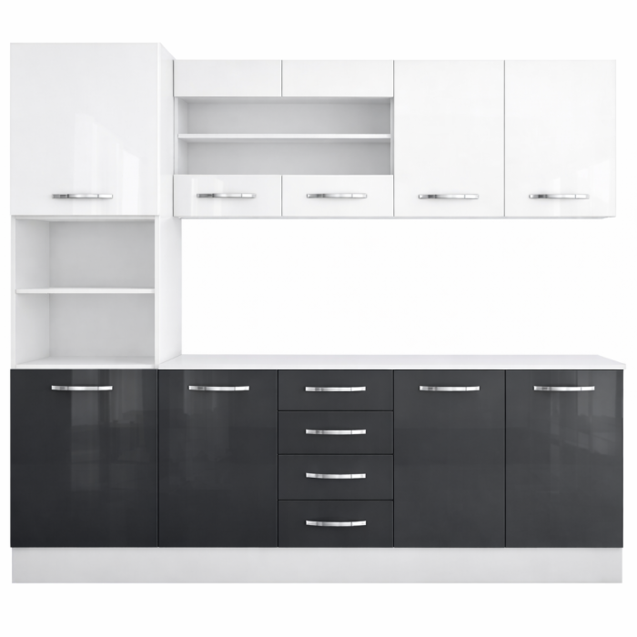 Daca spatiul tau se rezuma la 220cm si esti un iubitor al culorii lucioase, noi iti recomandam mobila de bucatarie Antonia Mdf!