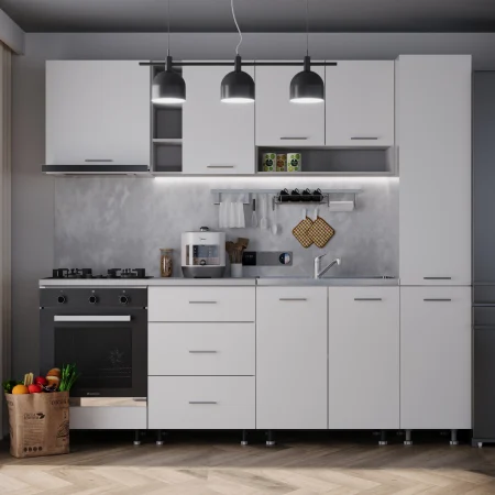Daca spatiul tau se rezuma la 240cm si esti un iubitor al culorii Antracit, noi iti recomandam mobila de bucatarie Sena!