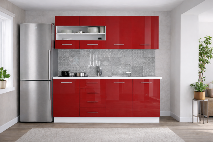 Transformă-ți locuința cu o bucătărie din MDF  lucioasa, perfectă pentru un decor modern și luminos. Finisajul lucios oferă un aspect premium, mărește vizual spațiul și se curăță rapid, fiind ideal pentru utilizare zilnică. Mobilierul este rezistent, practic și bine compartimentat, pentru o organizare eficientă a tuturor ustensilelor.