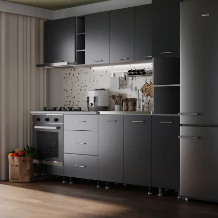 Daca spatiul tau se rezuma la 240cm si esti un iubitor al culorii Alb, noi iti recomandam mobila de bucatarie Sena!