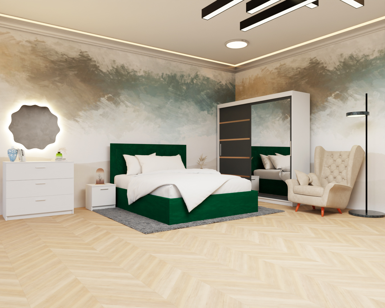 Setul se poate comanda si cu pat de 180 x 200 contra cost.