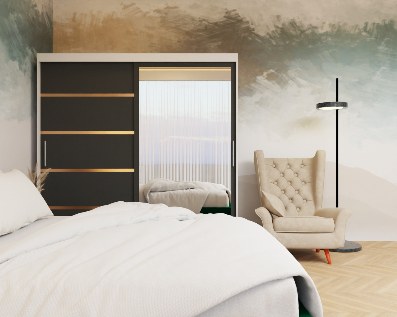 Dormitor: Lotus Pat Tapitat Dressing 200x200 Alb&Antracit 2 Usi cu Oglinda