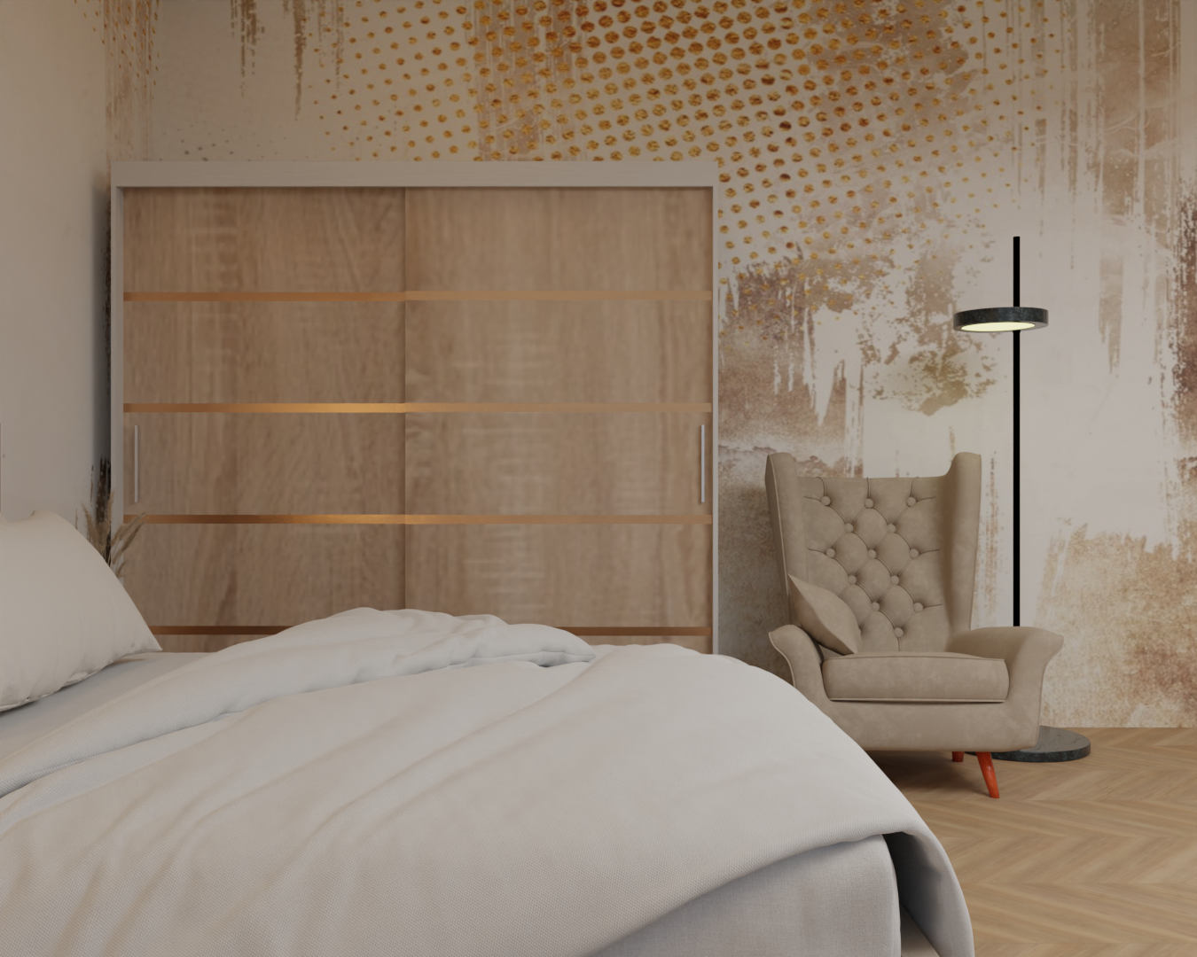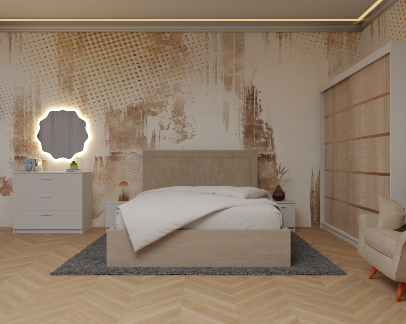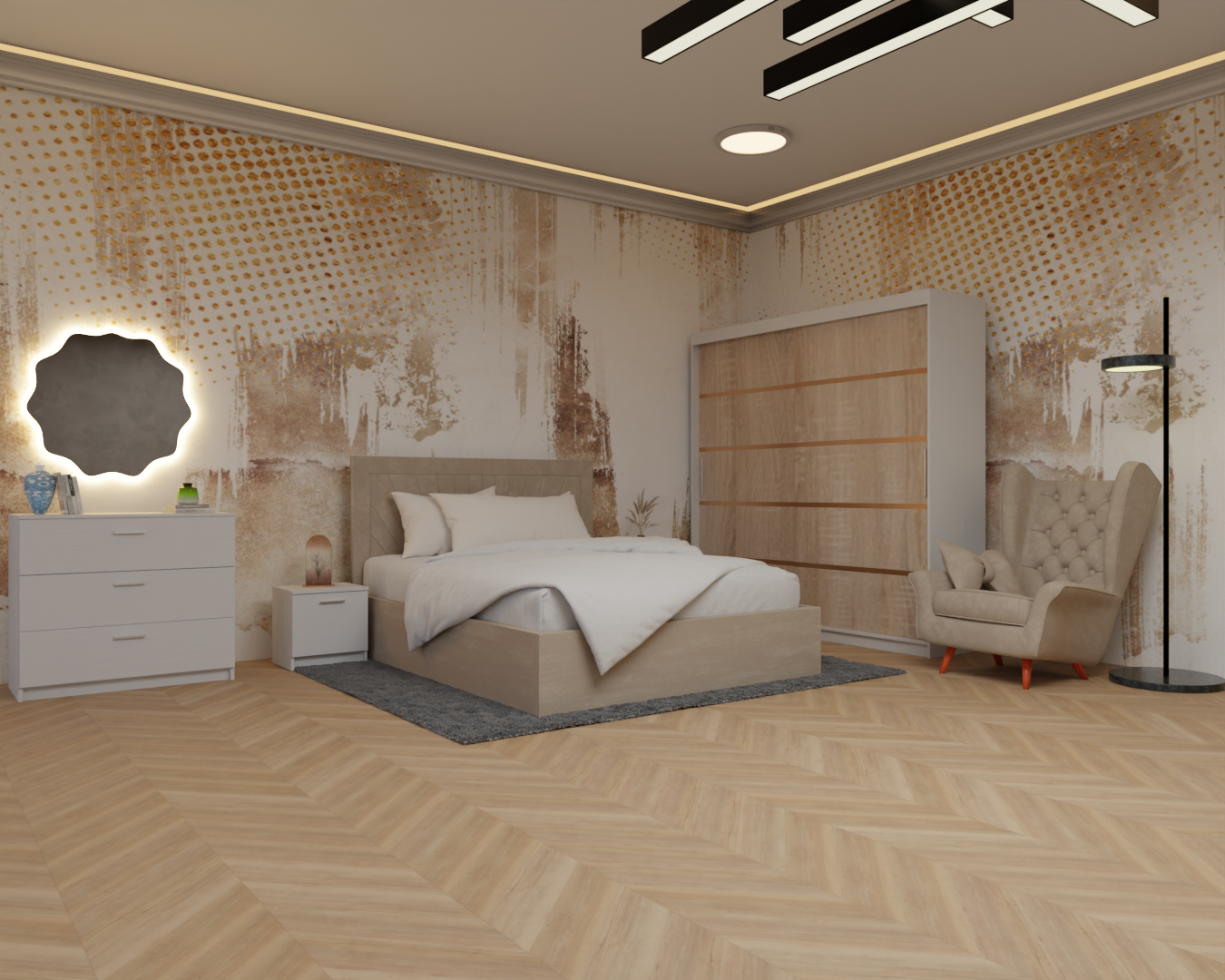 Dormitor: Lotus Pat Tapitat Dressing 200x200 Alb&Sonoma 2 Usi