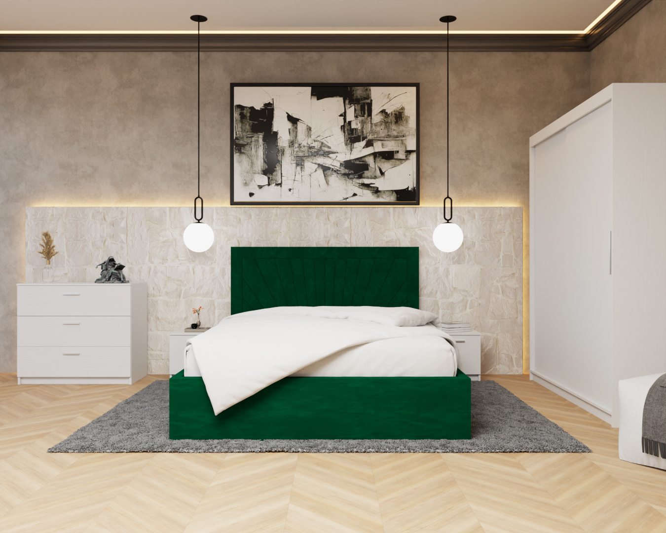 Dormitor Lotus Pat Tapitat Dressing 150x200 Alb 2 usi