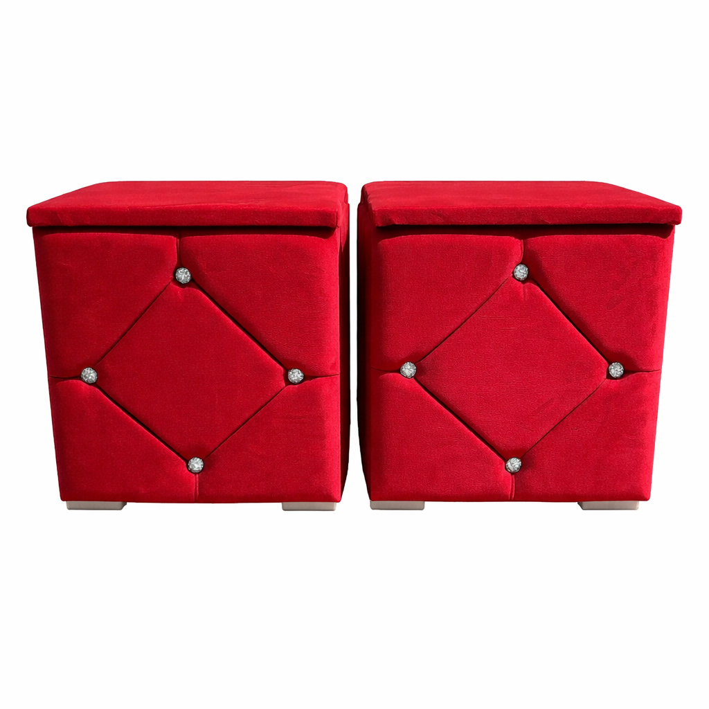 Elegante și rafinate, aceste noptiere tapițate cu stofă de înaltă calitate adaugă un plus de stil oricărui dormitor. Modelul geometric decorativ și accentele cu nasturi cristal oferă un aspect sofisticat, iar structura solidă garantează durabilitate în timp.