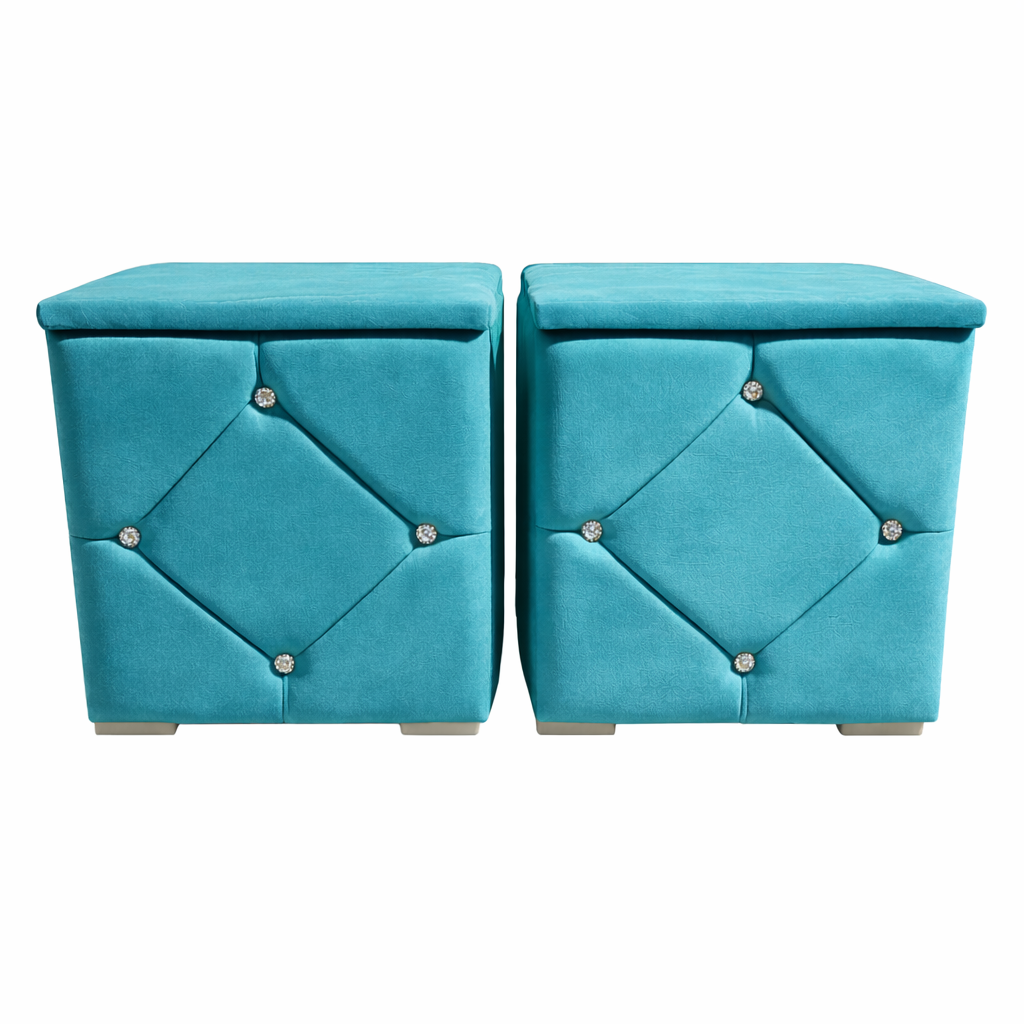 Elegante și rafinate, aceste noptiere tapițate cu stofă de înaltă calitate adaugă un plus de stil oricărui dormitor. Modelul geometric decorativ și accentele cu nasturi cristal oferă un aspect sofisticat, iar structura solidă garantează durabilitate în timp.