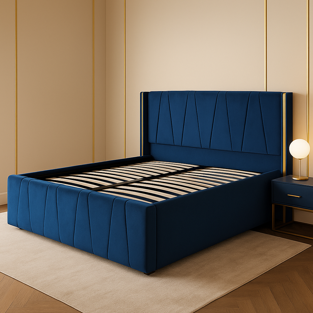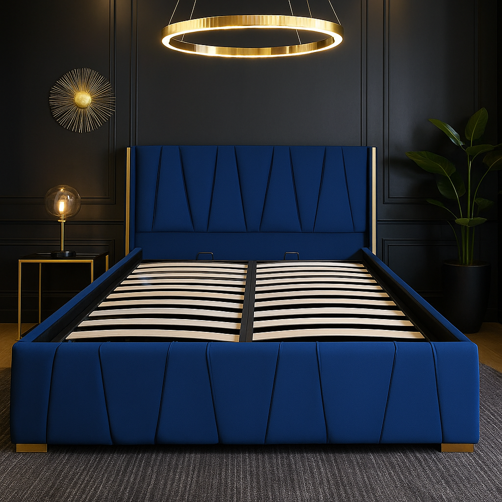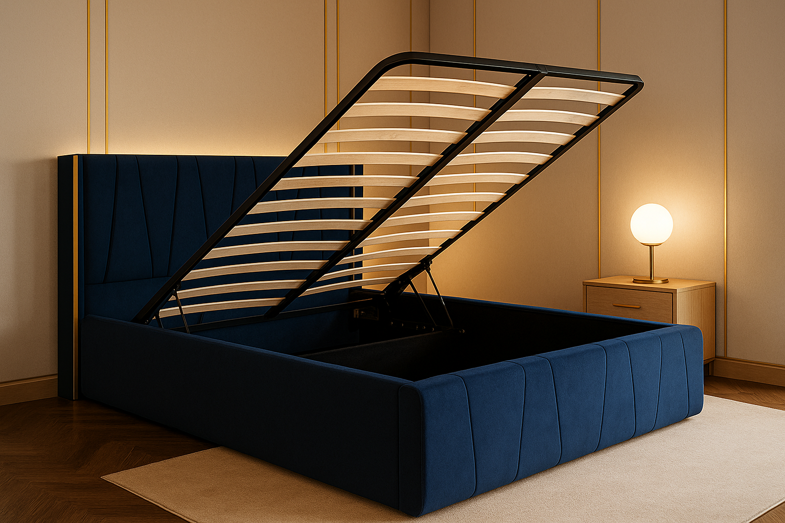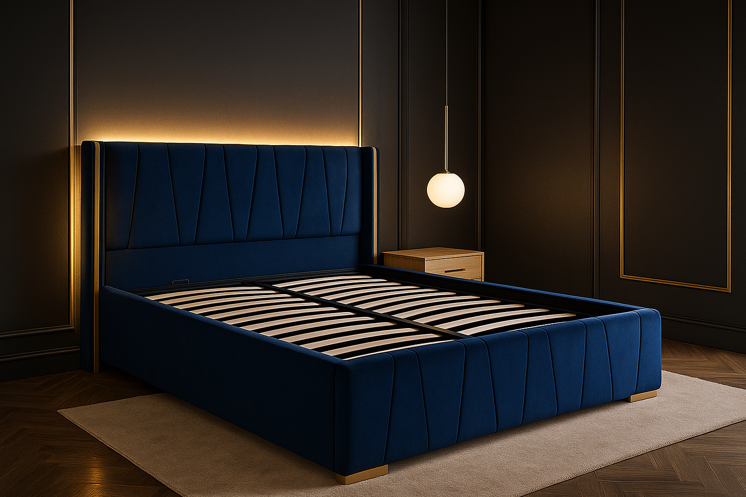 🛏️ Pat tapițat EVA – design modern cu ladă de depozitare