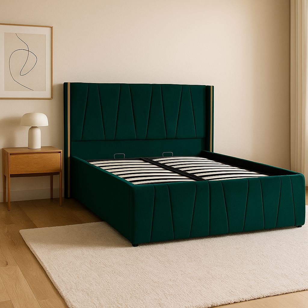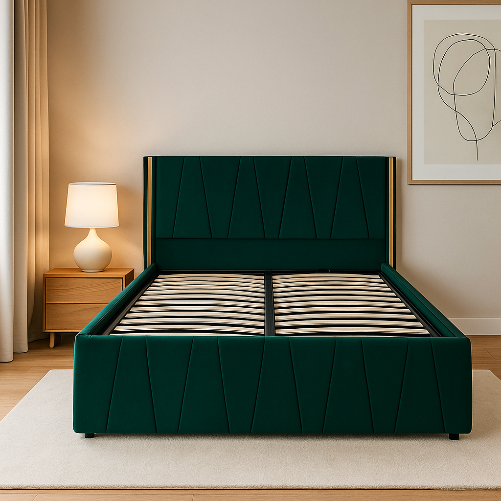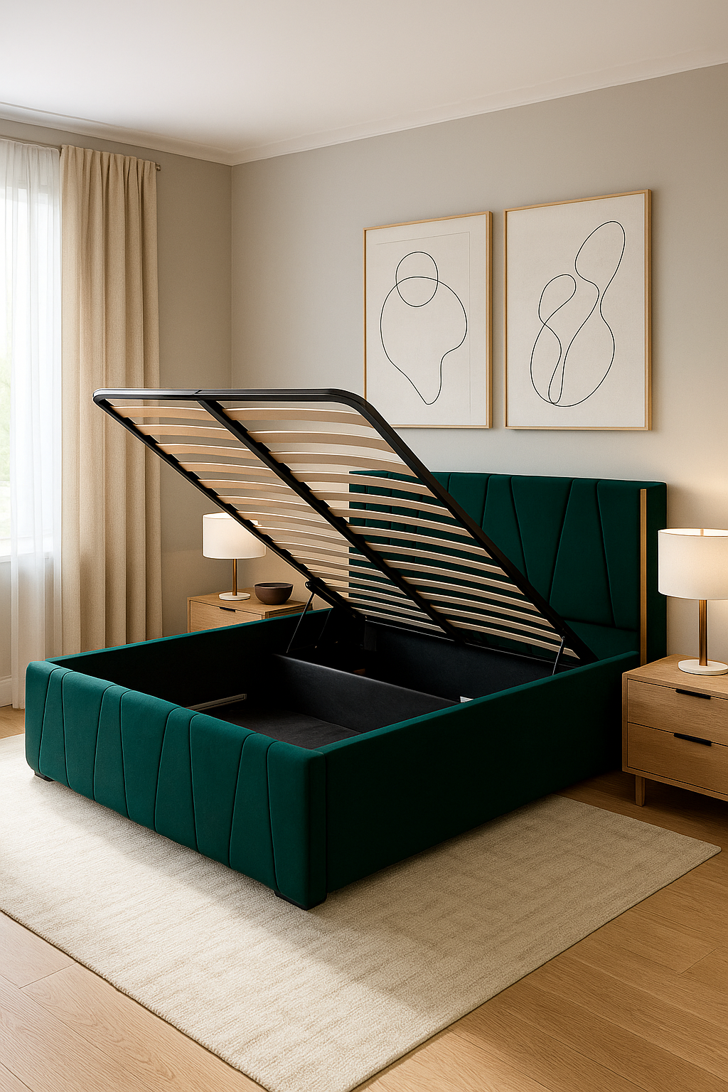 🛏️ Pat tapițat EVA – design modern cu ladă de depozitare