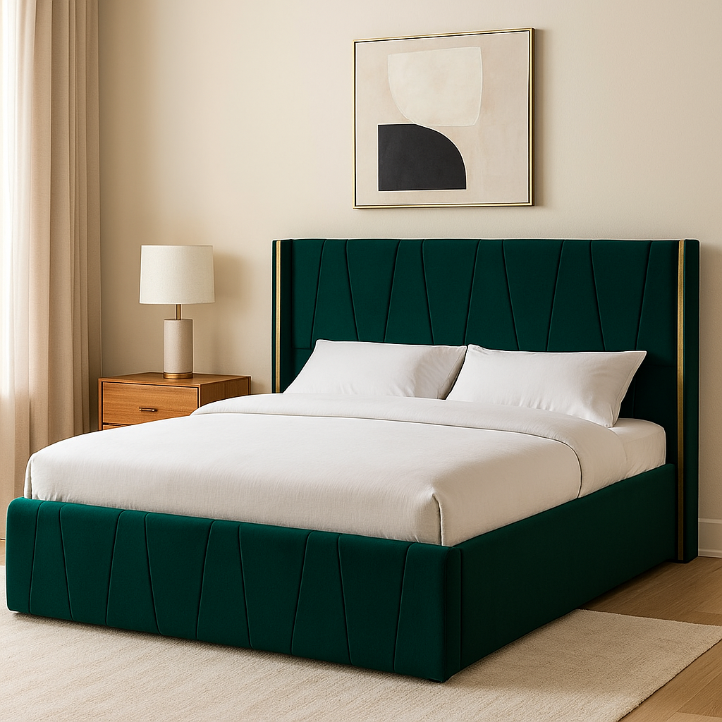 Tapițat în material catifelat, plăcut la atingere și disponibil în mai multe culori moderne, acest model oferă un plus de confort și stil dormitorului tău.
