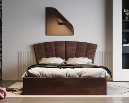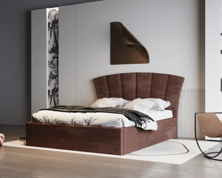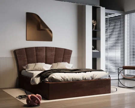 Patul Lucas este alegerea ideală dacă îți dorești un dormitor modern, elegant și confortabil. Designul său rafinat, cu tăblie tapițată în formă de scoică și nuanțe calde, adaugă personalitate și stil oricărui spațiu.