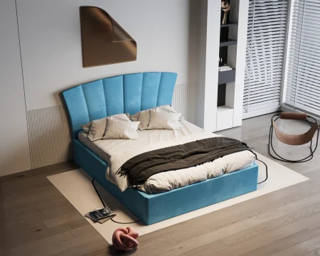 Patul Lucas este alegerea ideală dacă îți dorești un dormitor modern, elegant și confortabil. Designul său rafinat, cu tăblie tapițată în formă de scoică și nuanțe calde, adaugă personalitate și stil oricărui spațiu.