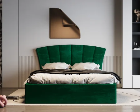 Patul Lucas este alegerea ideală dacă îți dorești un dormitor modern, elegant și confortabil. Designul său rafinat, cu tăblie tapițată în formă de scoică și nuanțe calde, adaugă personalitate și stil oricărui spațiu.