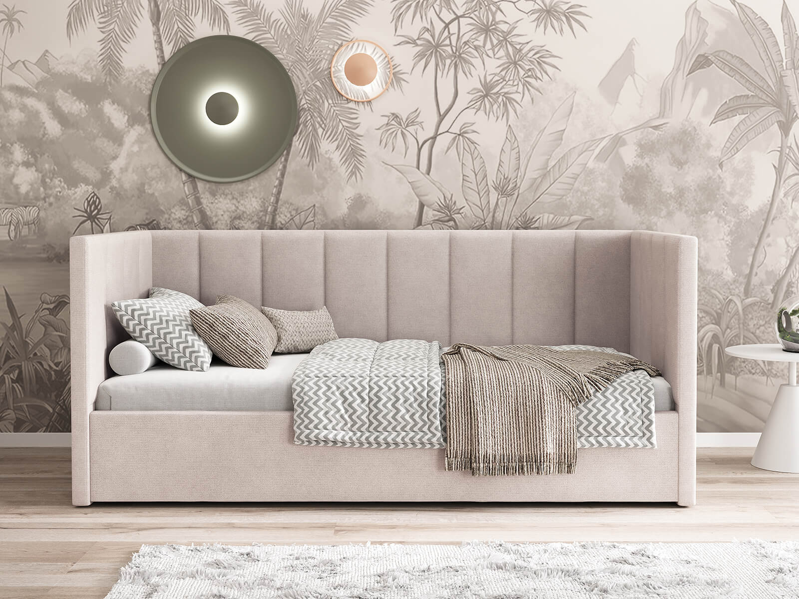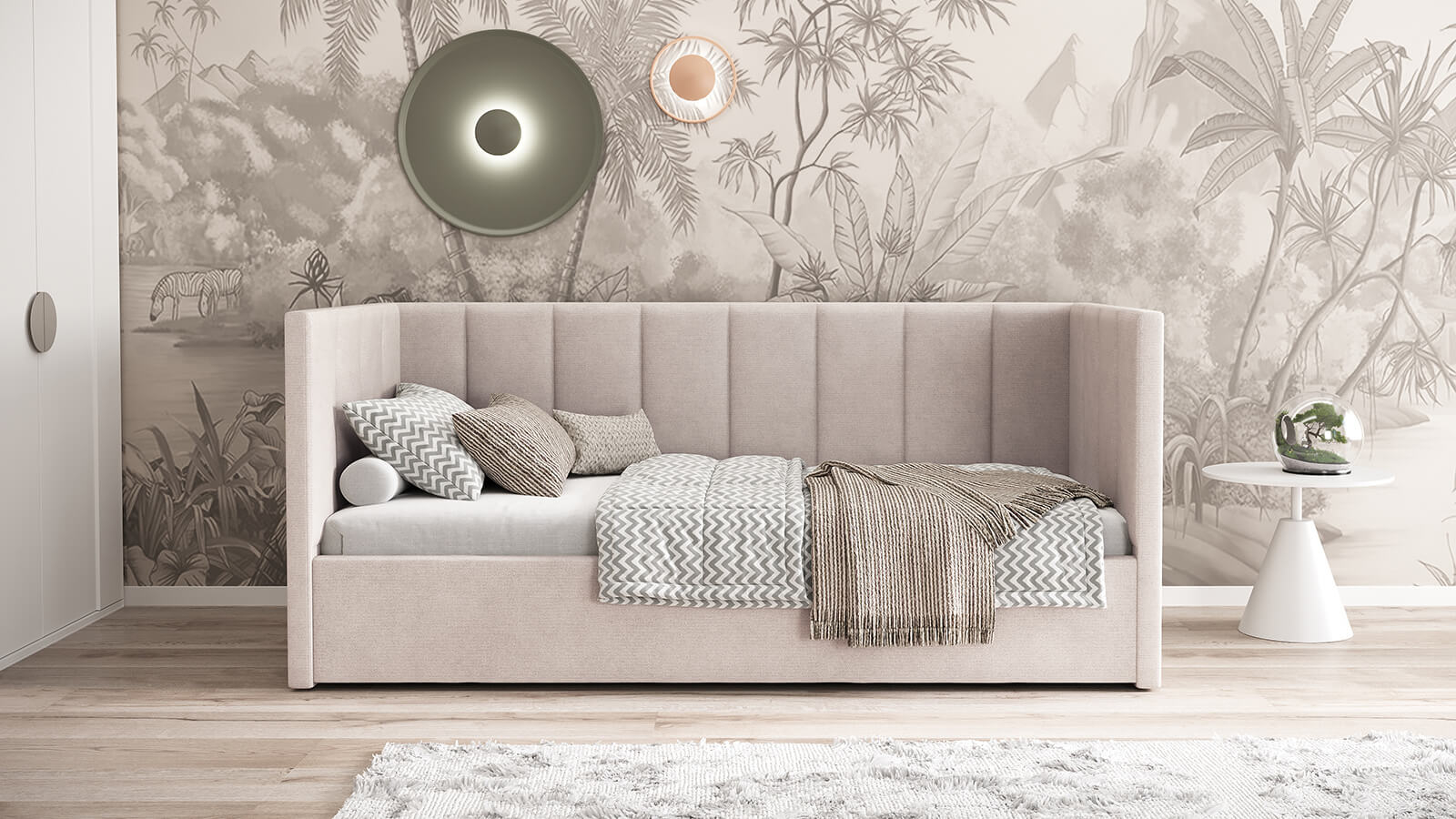PATUL  LOLA ESTE  o soluție practică și elegantă pentru spații rezidențiale sau comerciale, concepută pentru a îmbina funcția de ședere cu cea de dormit. Datorită dimensiunii , este ideală pentru camere de copii, adolescenți, camere de oaspeți sau garsoniere.