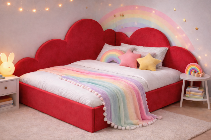 • Tăblie tapițată tip „norișori”, cu design atractiv pentru copii
