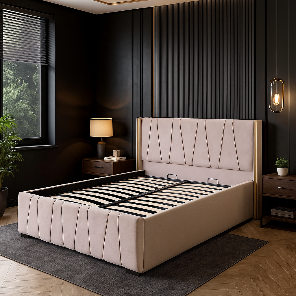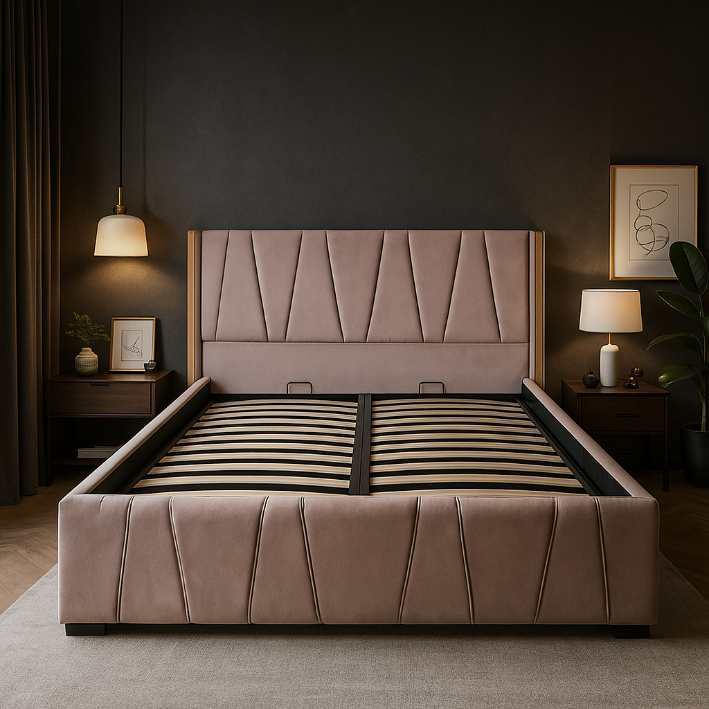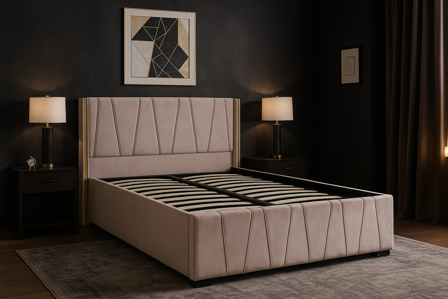 🛏️ Pat tapițat EVA – design modern cu ladă de depozitare