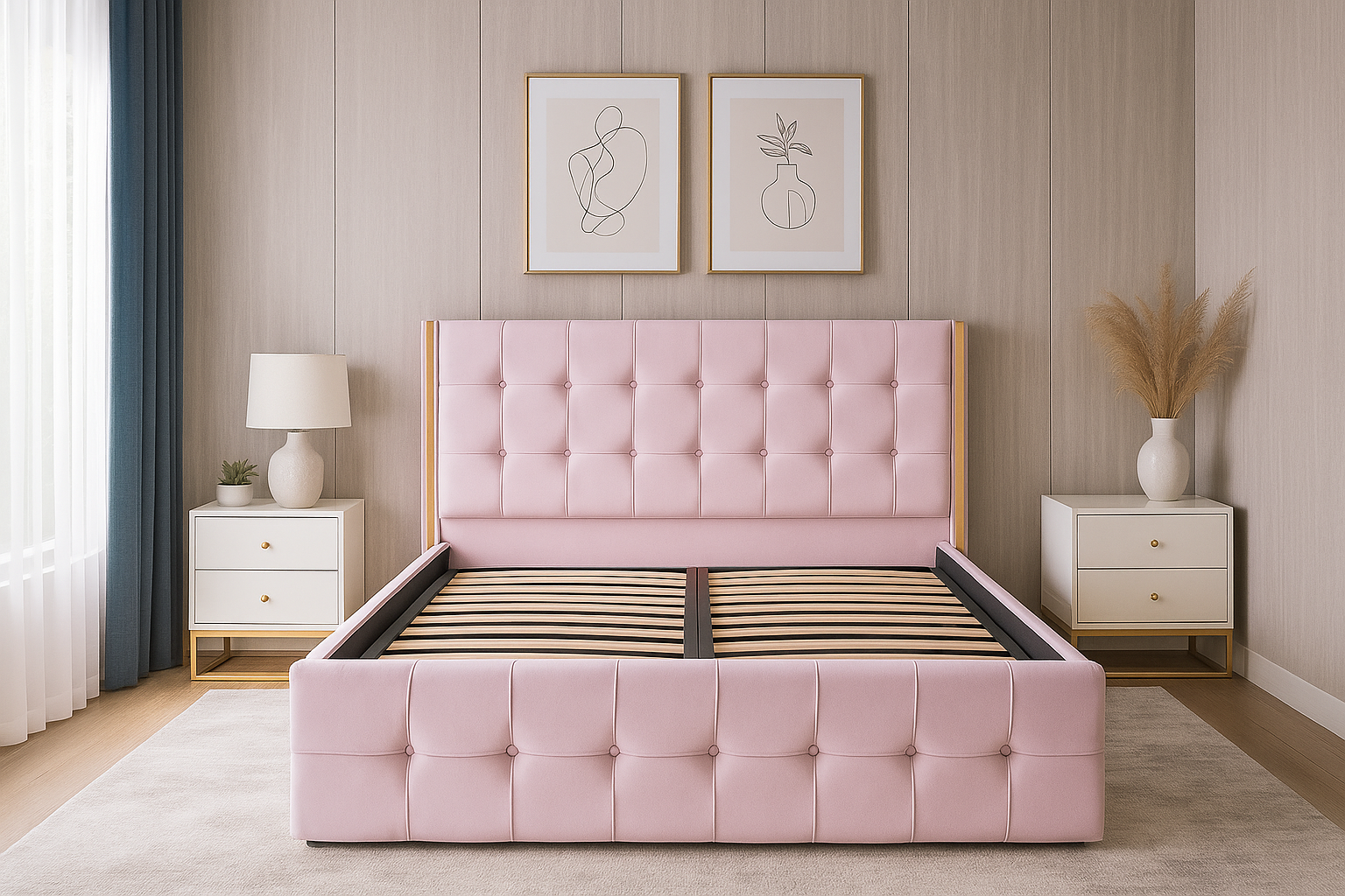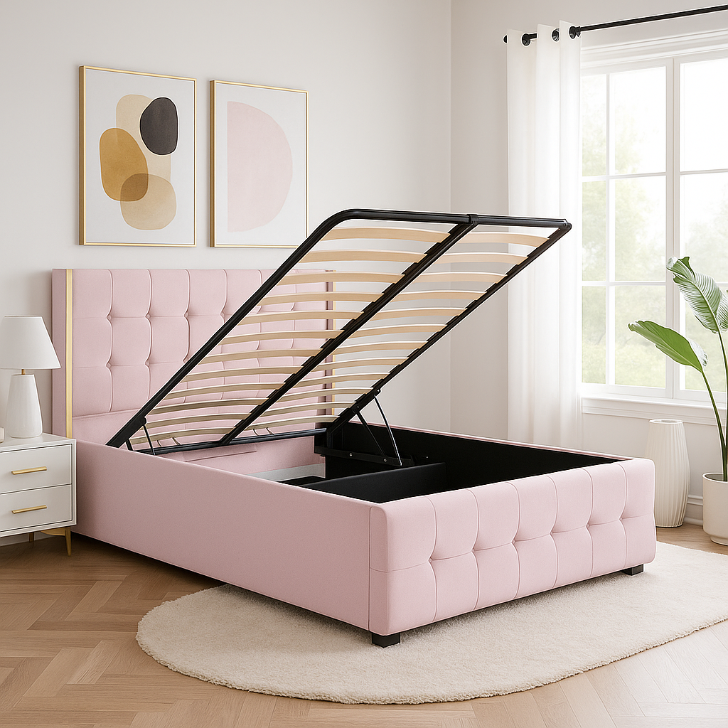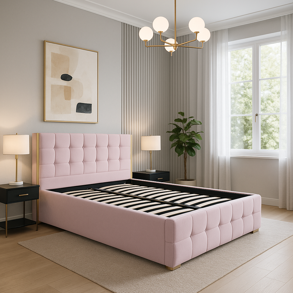 Somiera se ridică ușor, iar spațiul de depozitare e încăpător.