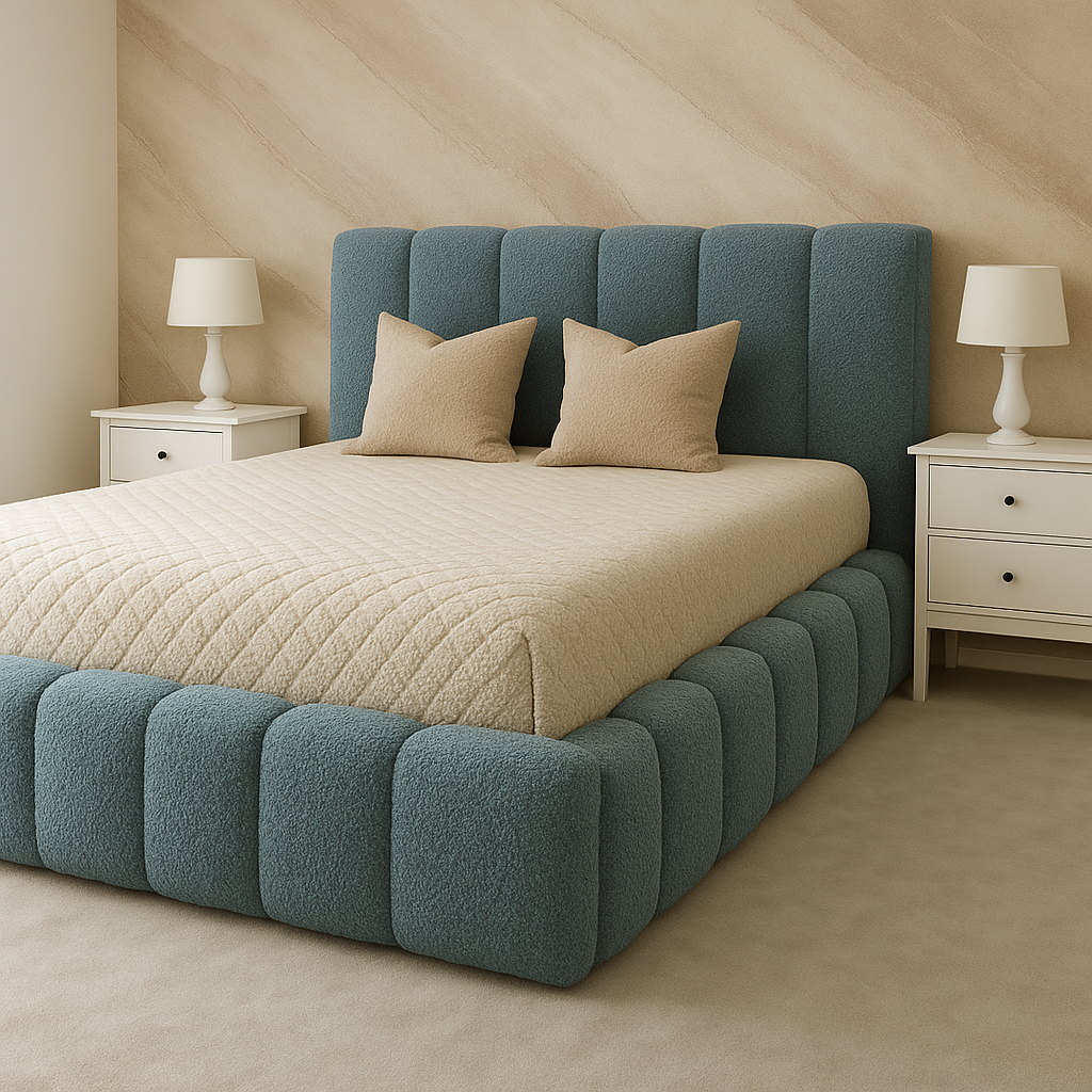 Tăblia înaltă și capitonată oferă un plus de rafinament și confort, ideală pentru momentele de relaxare.