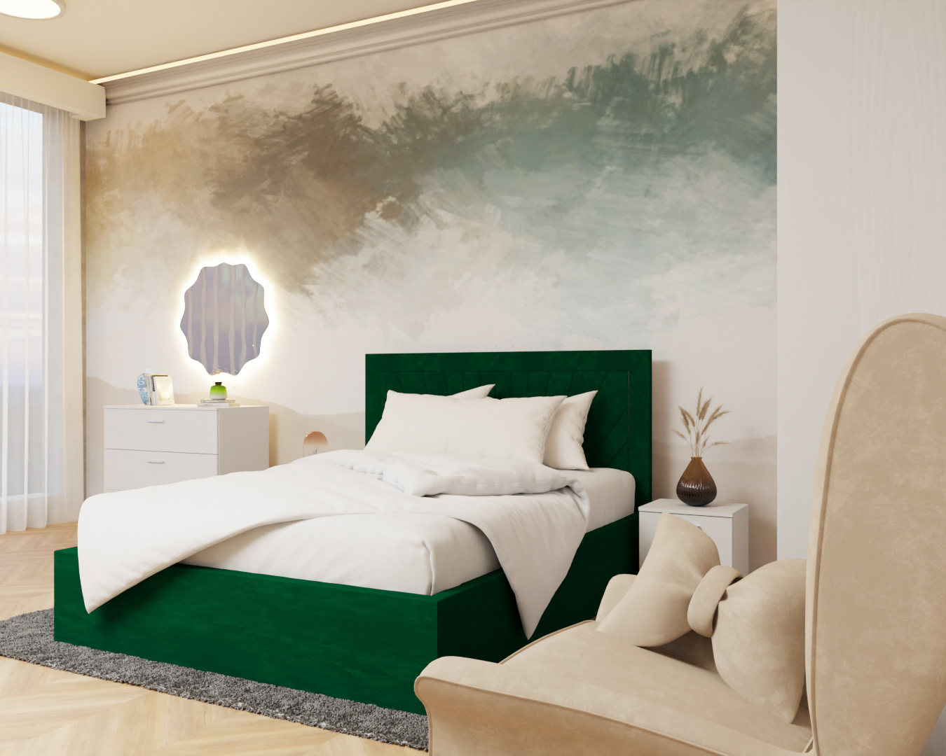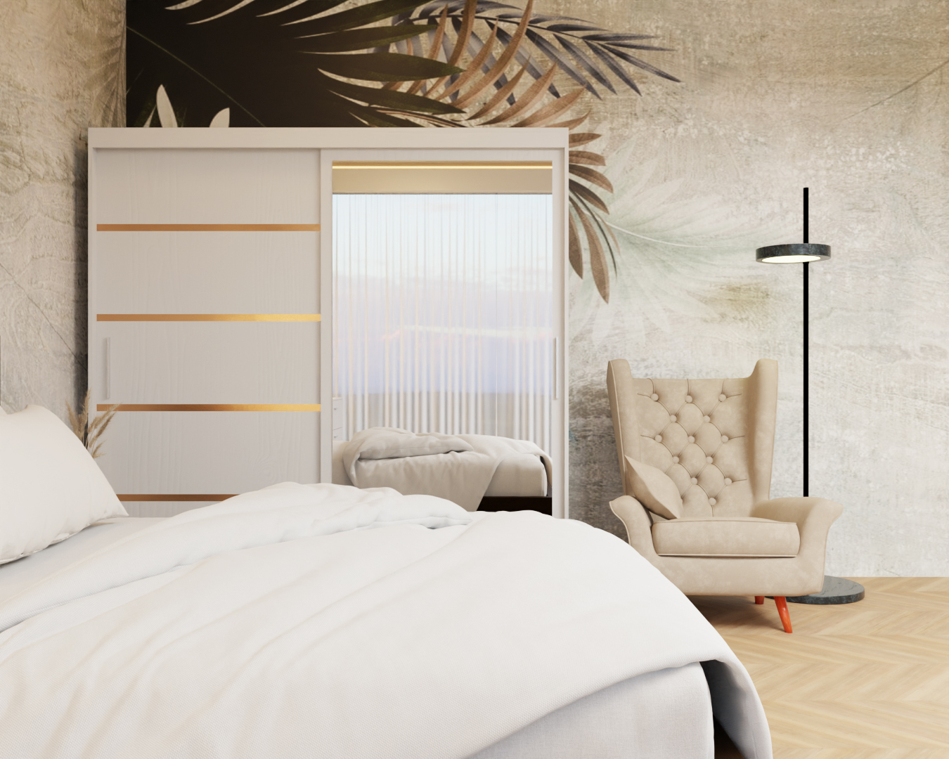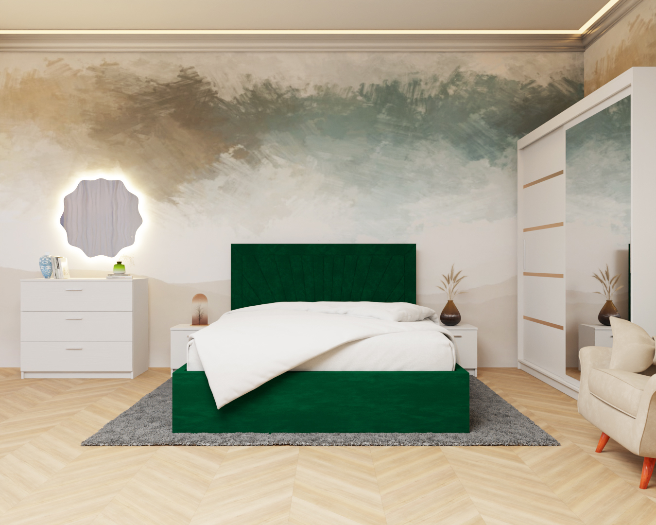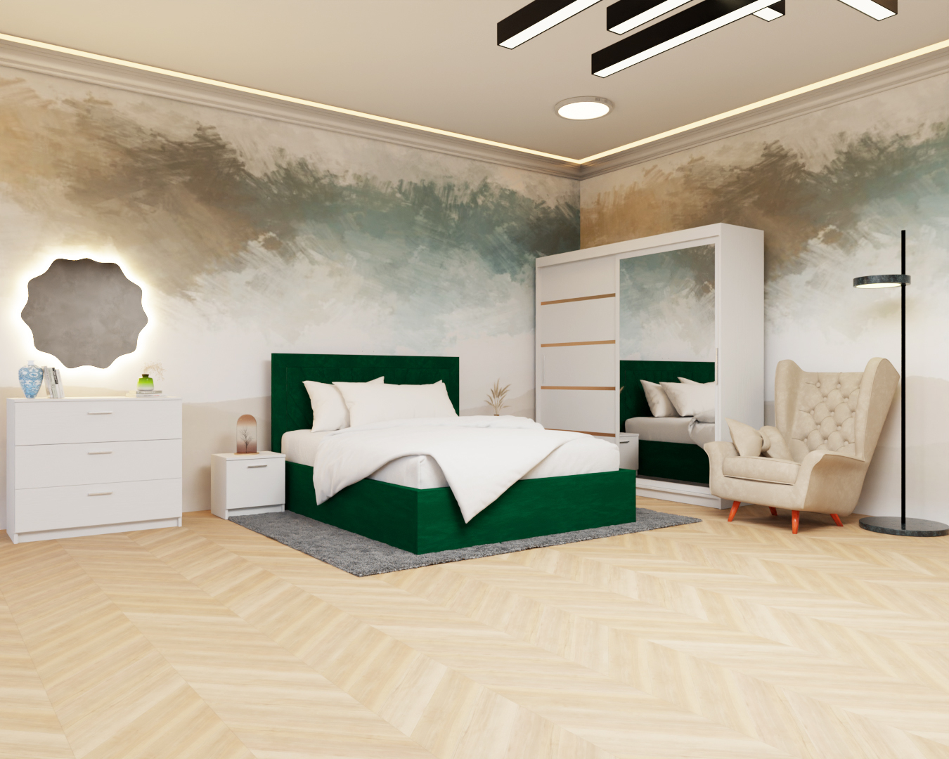 Dormitor Lotus Pat Tapitat Dressing 200x200 Alb cu oglinda