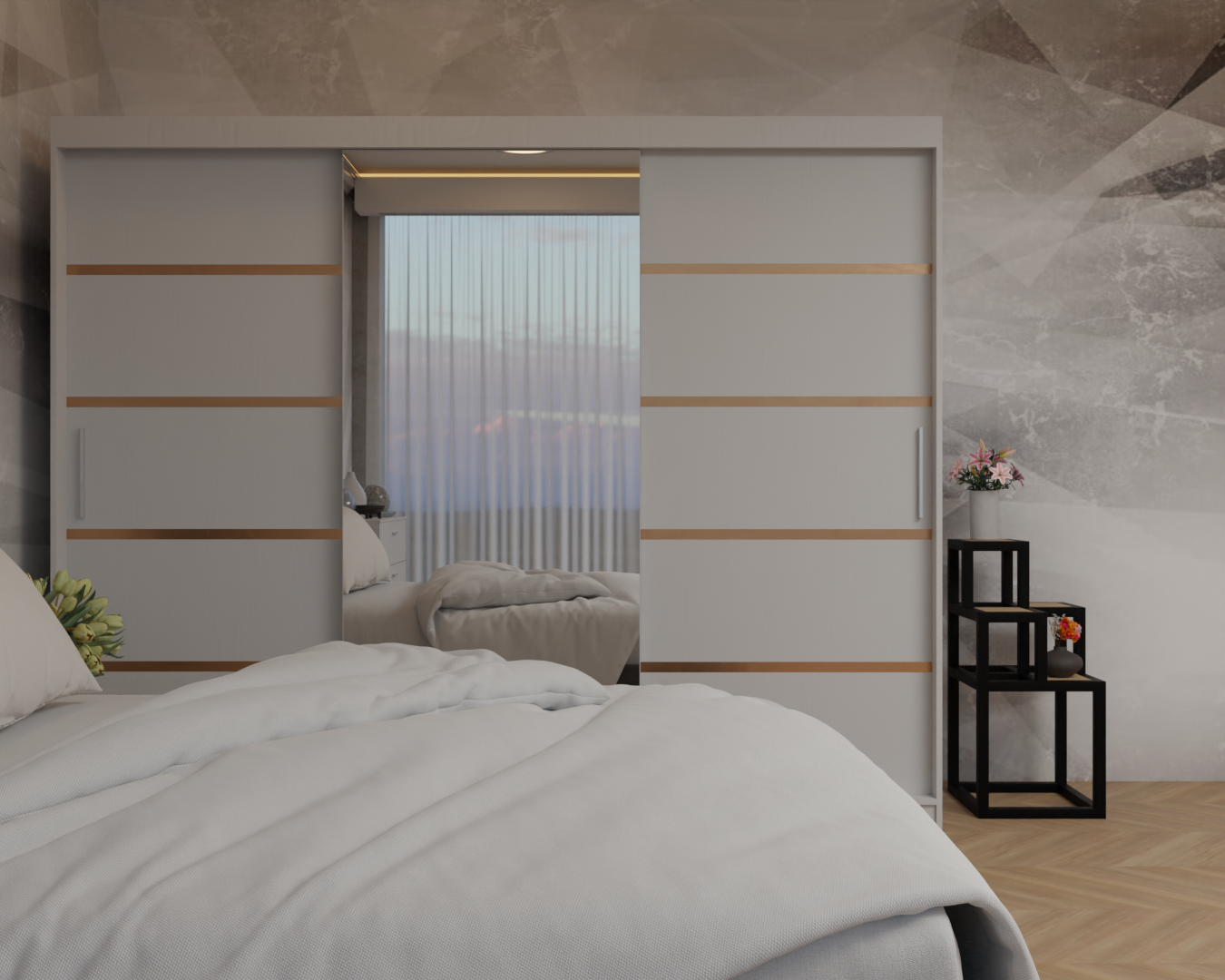 Dormitor: Lotus Pat Tapitat Dressing 250x200 Alb 3 usi Cu Oglinda