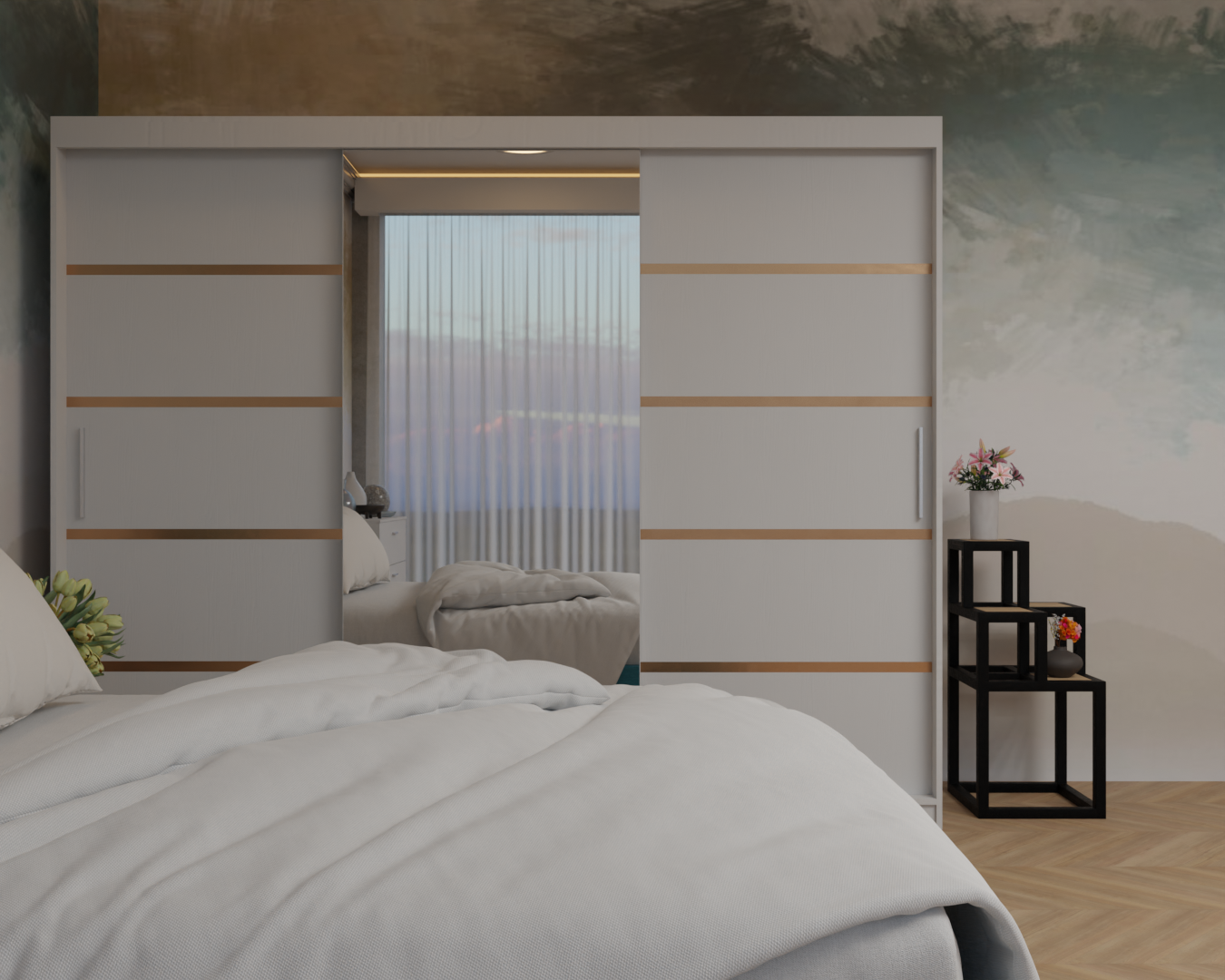 Dormitor: Lotus Pat Tapitat Dressing 250x200 Alb 3 usi Cu Oglinda