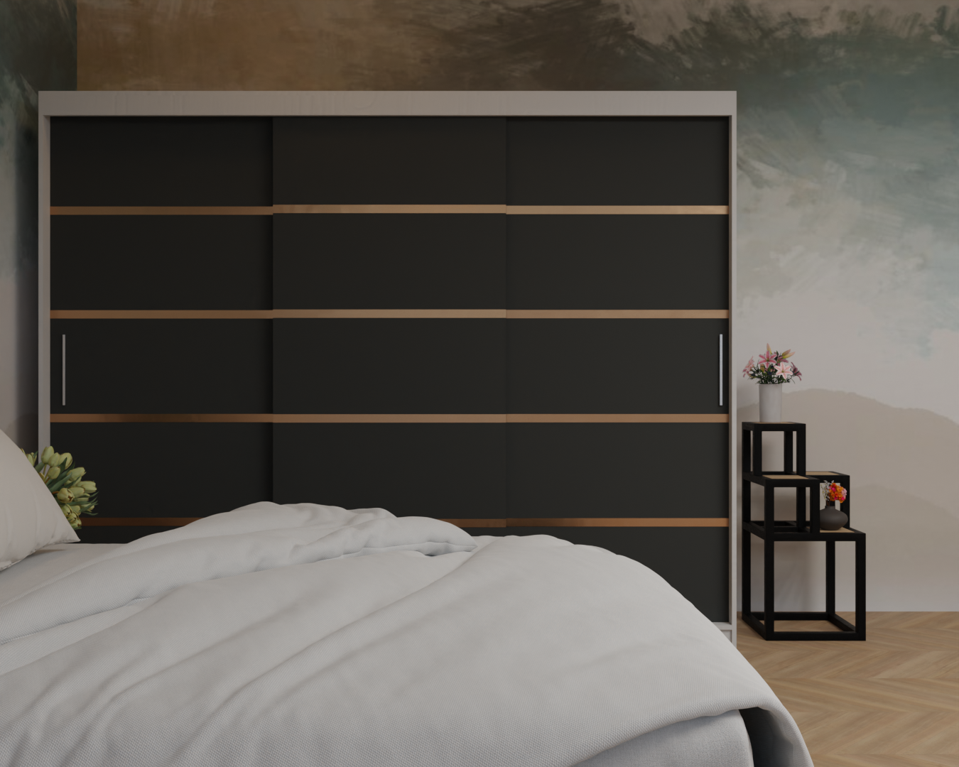 Dormitor: Lotus Pat Tapitat Dressing 250x200 Alb&Antracit 3 Usi