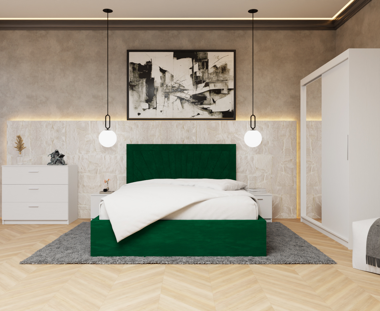 Dormitor Lotus Pat Tapitat Dressing 150x200 Alb 2 usi cu Oglinda