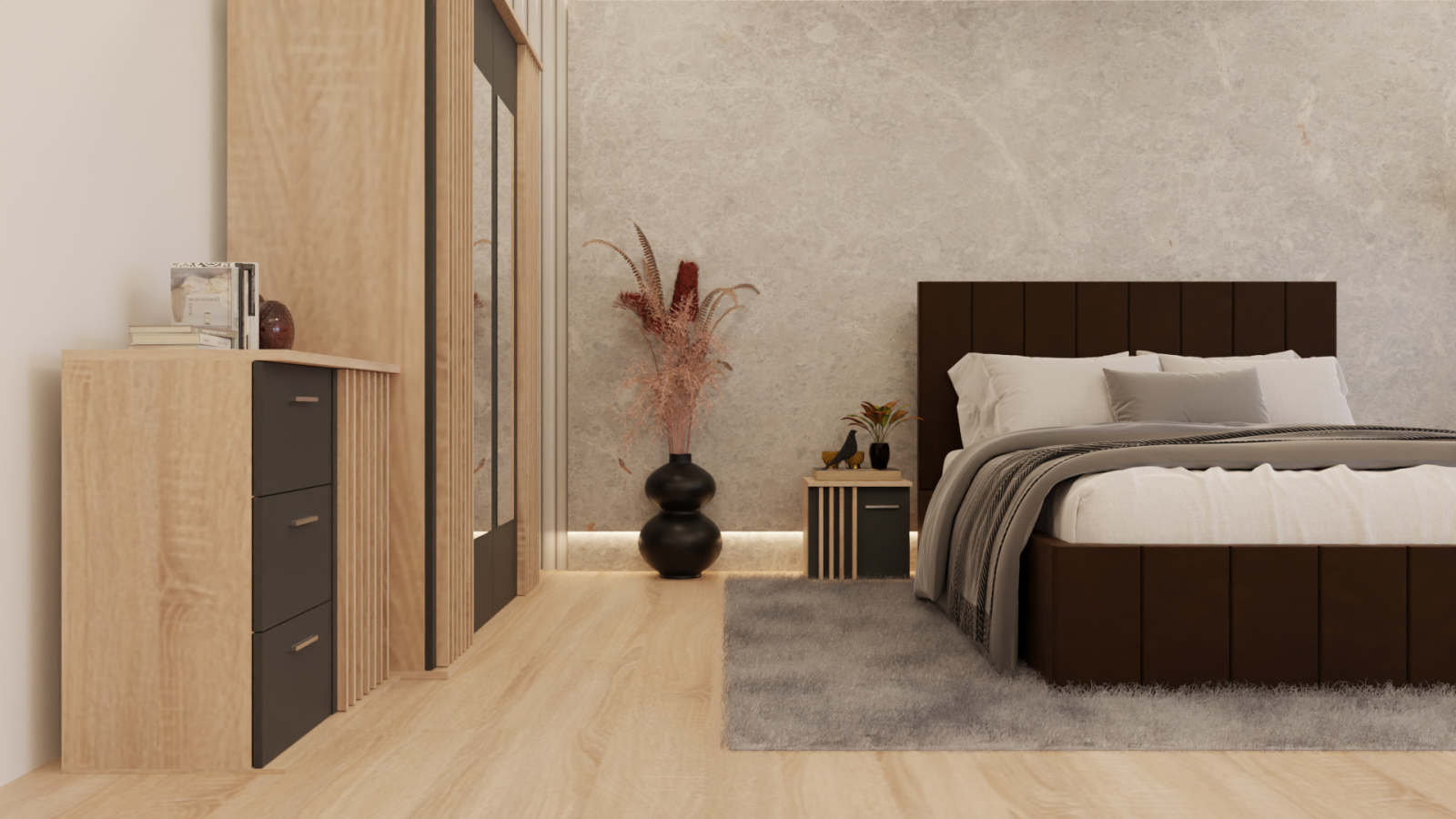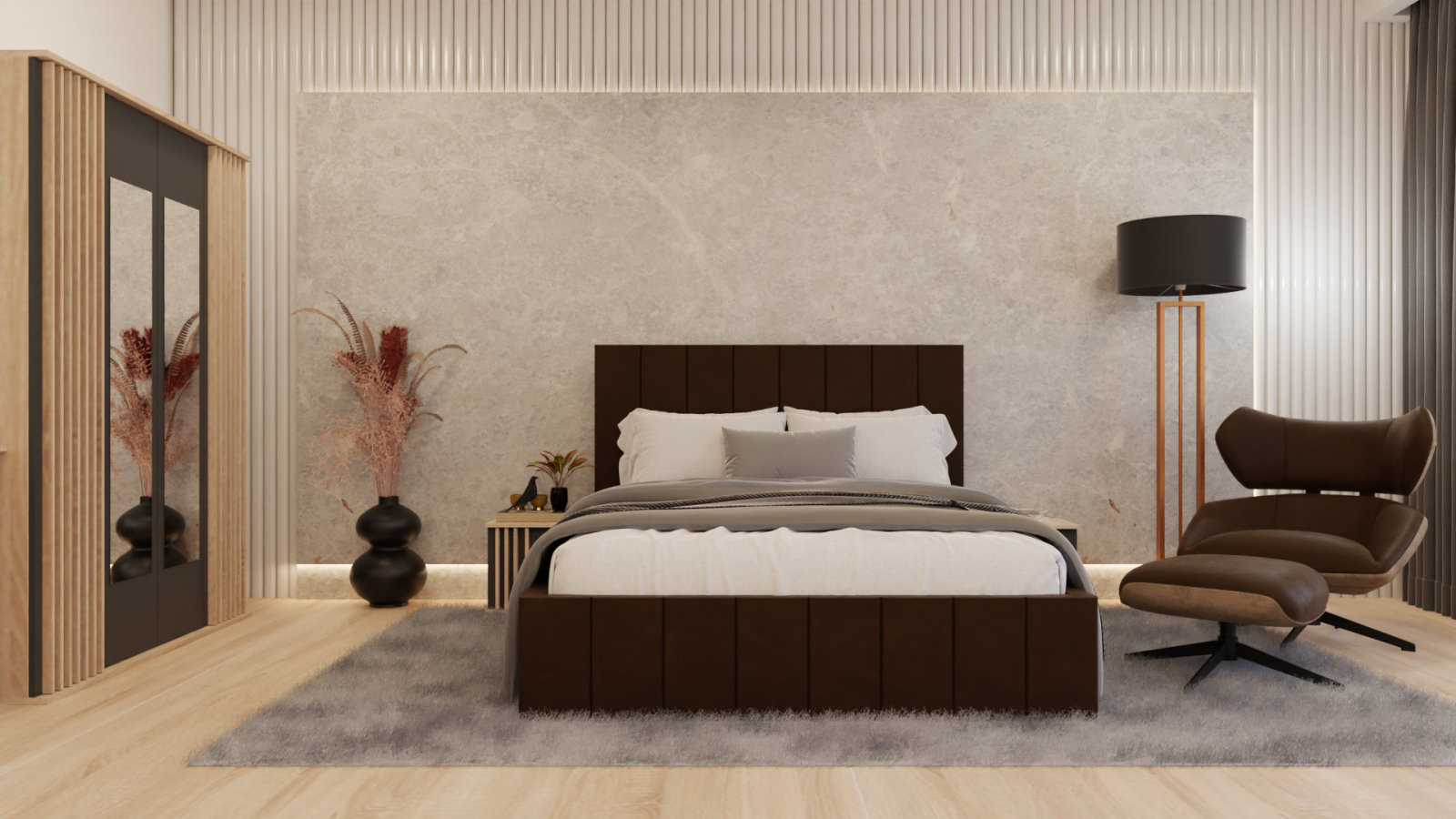 Dormitor: Dallas Cu Pat Tapitat Maro
