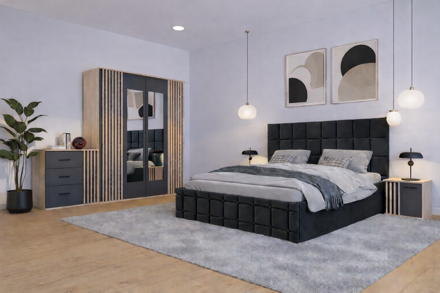 Dormitor Dallas Cu Pat Regal Tapitat
