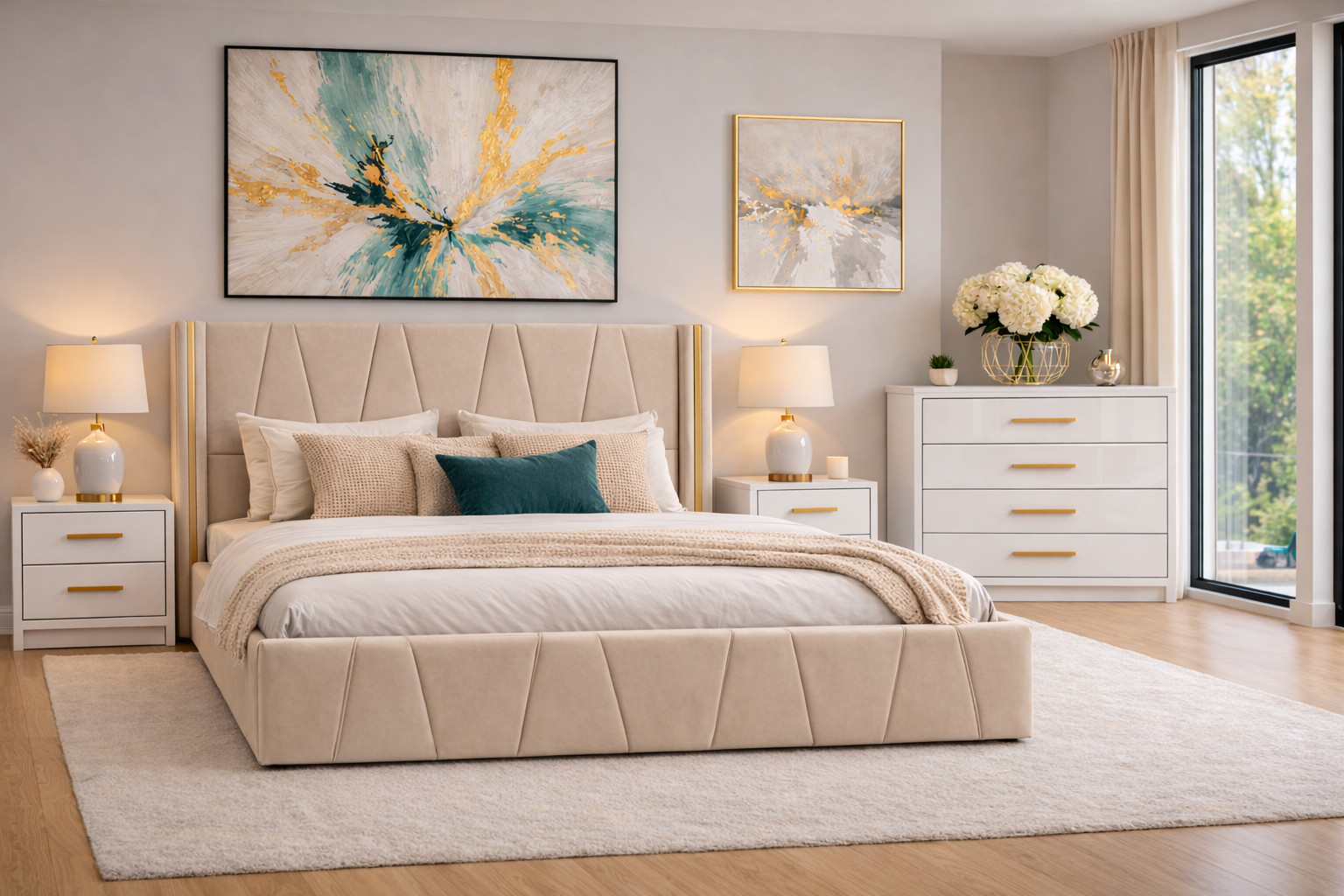 Setul Eva este alegerea ideală pentru cei care își doresc un dormitor stilat, confortabil și perfect organizat, unde fiecare detaliu contribuie la o atmosferă rafinată și relaxantă.